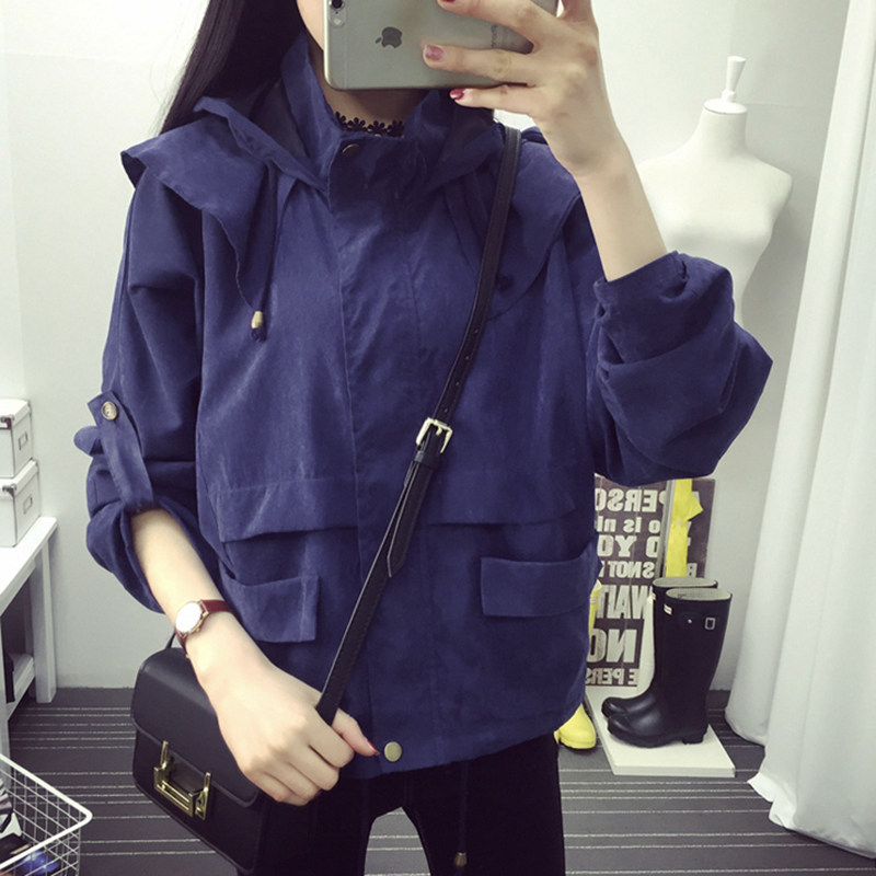 纯色连帽风衣外套韩版桃皮绒