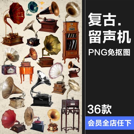 复古欧式留声机老式唱片音响海报装饰电子手帐拼贴PNG免抠素材图