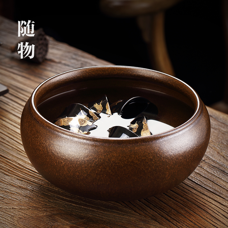 侘寂柴烧茶洗日式杯洗特大陶瓷水盂茶杯盆大号建水茶渣缸茶具配件
