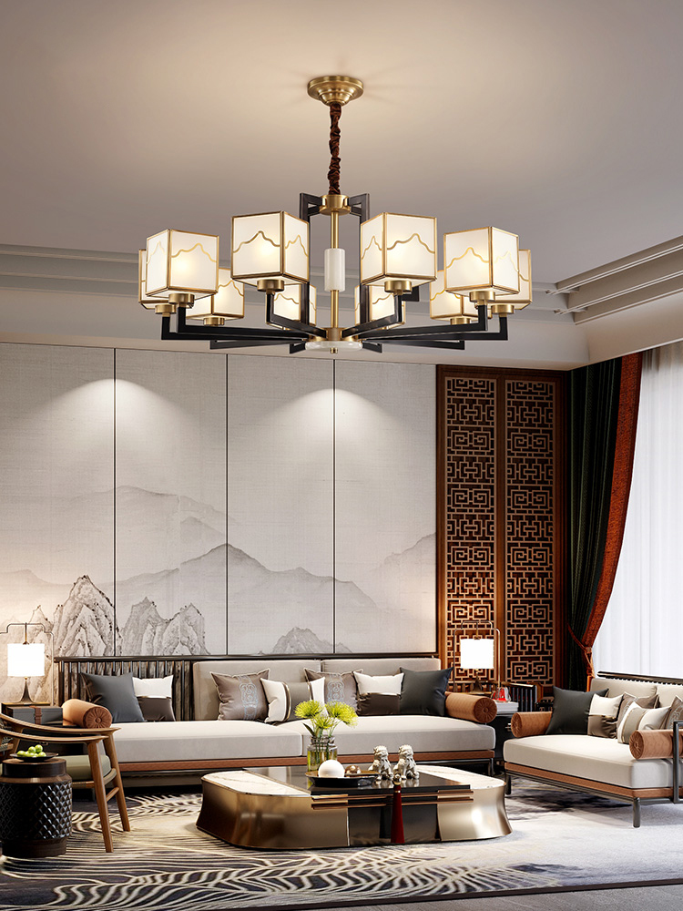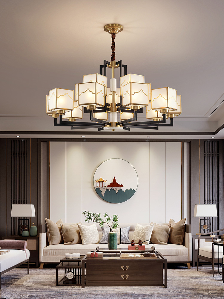 新中式吊灯全铜玻璃大灯轻奢客厅现代餐厅家用中国风禅意大厅灯具