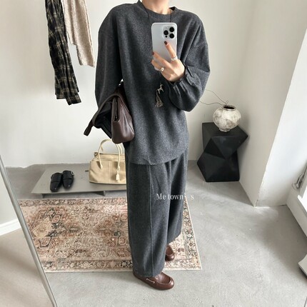 2025秋季新款韩版宽松显瘦百搭时尚圆领长袖卫衣休闲裤两件套女潮