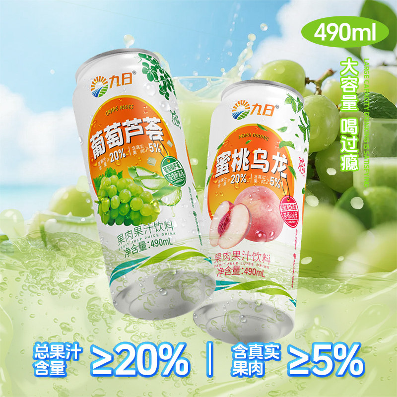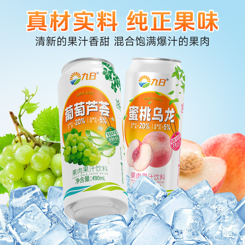【直播专享临期特卖】九日果汁饮料葡萄芦荟蜜桃乌龙490ml*5罐装
