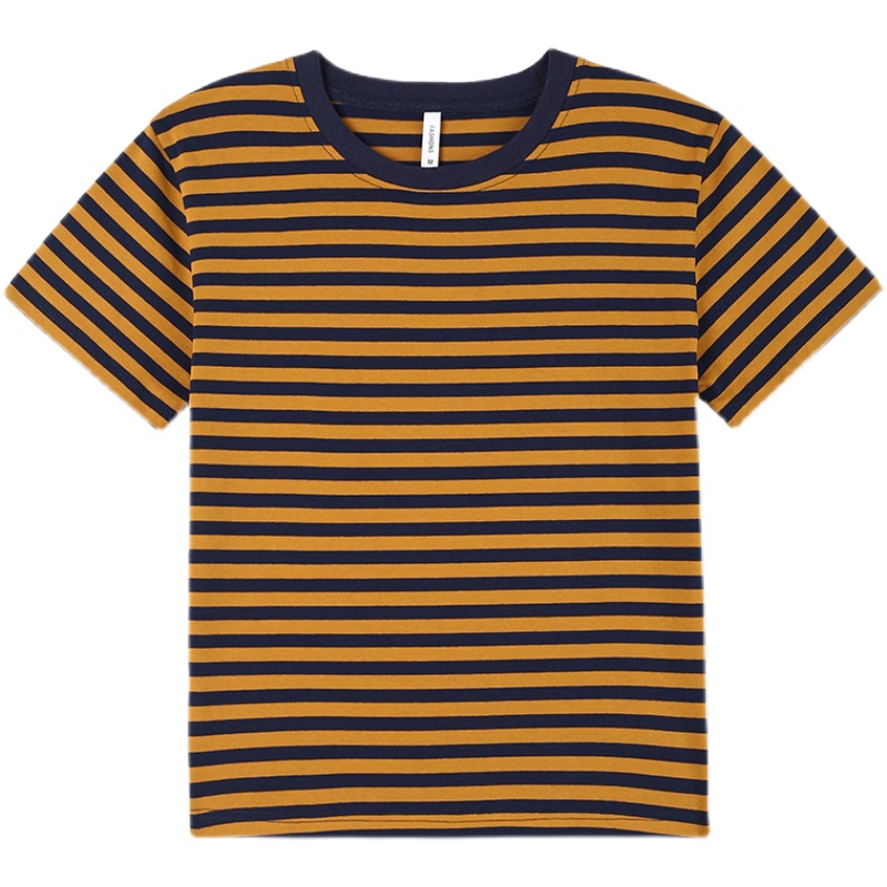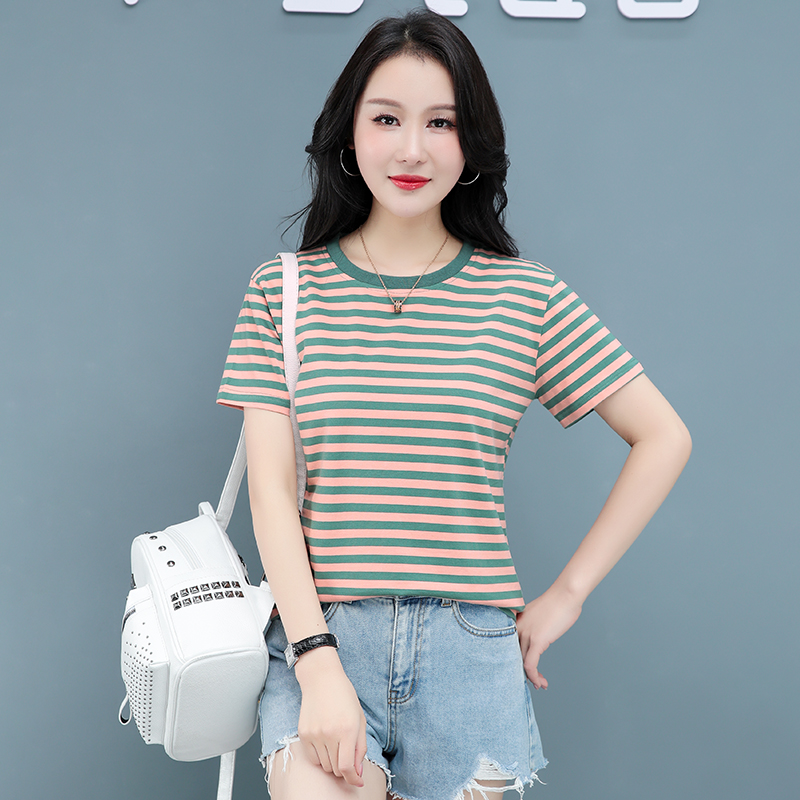 纯棉条纹短袖t恤女夏季2025年新款夏装大码宽松中年妈妈薄款上衣T