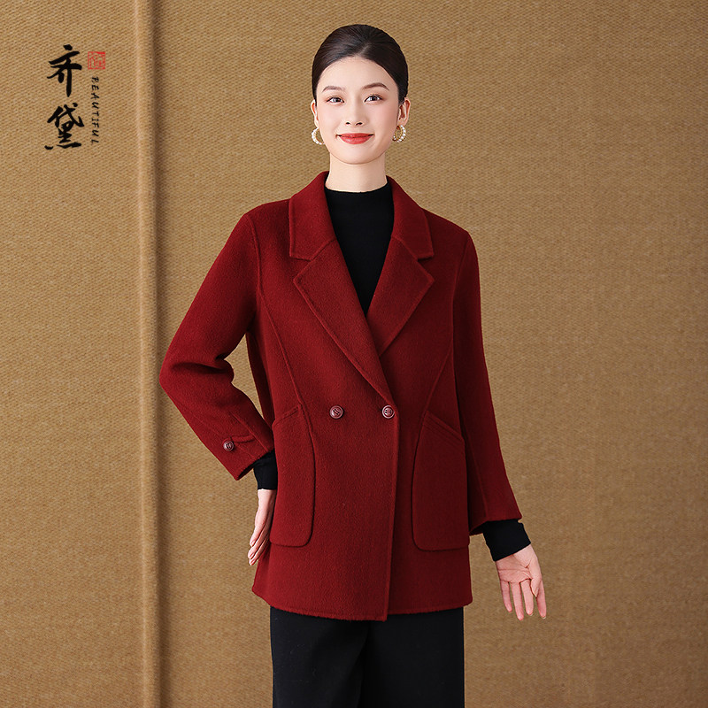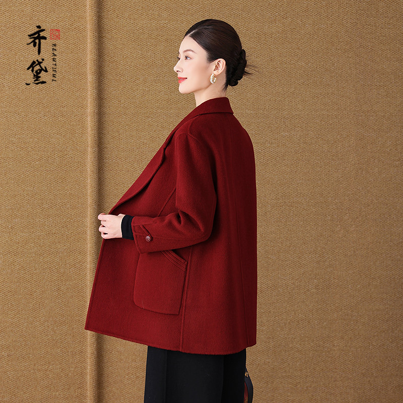 红色双面羊绒大衣女2025秋冬新款高端品牌喜婆婆婚宴羊毛呢子外套