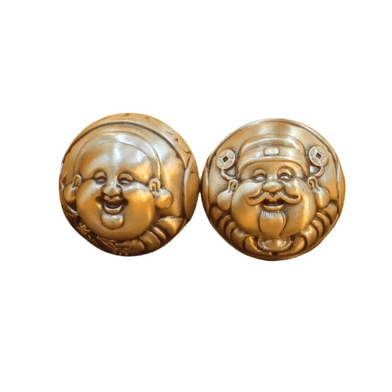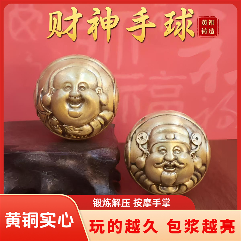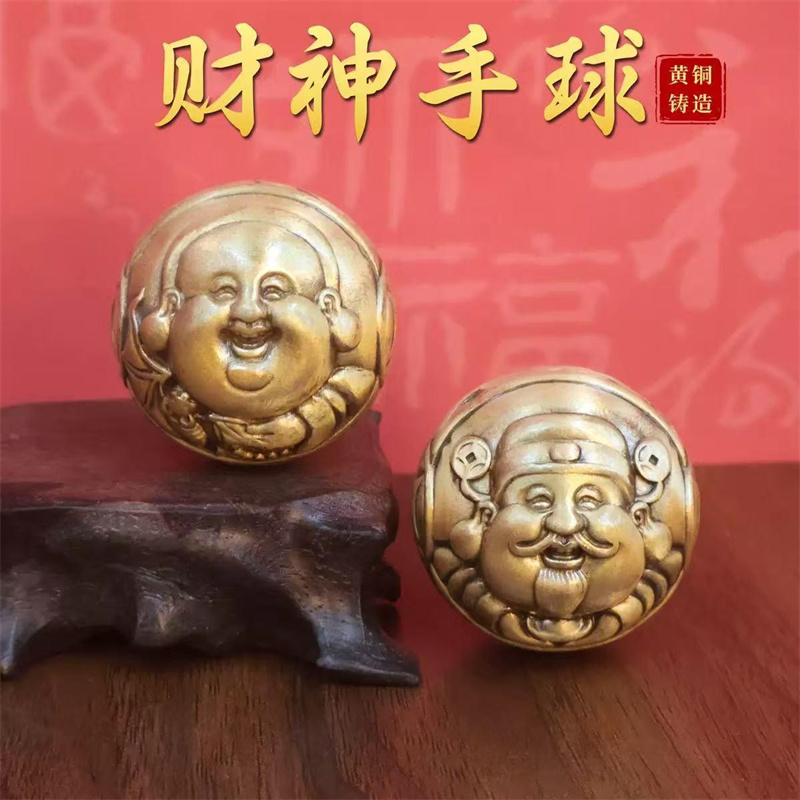 纯黄铜笑脸财神手把件实心手球健身球装饰客厅玄关摆件创意小礼物