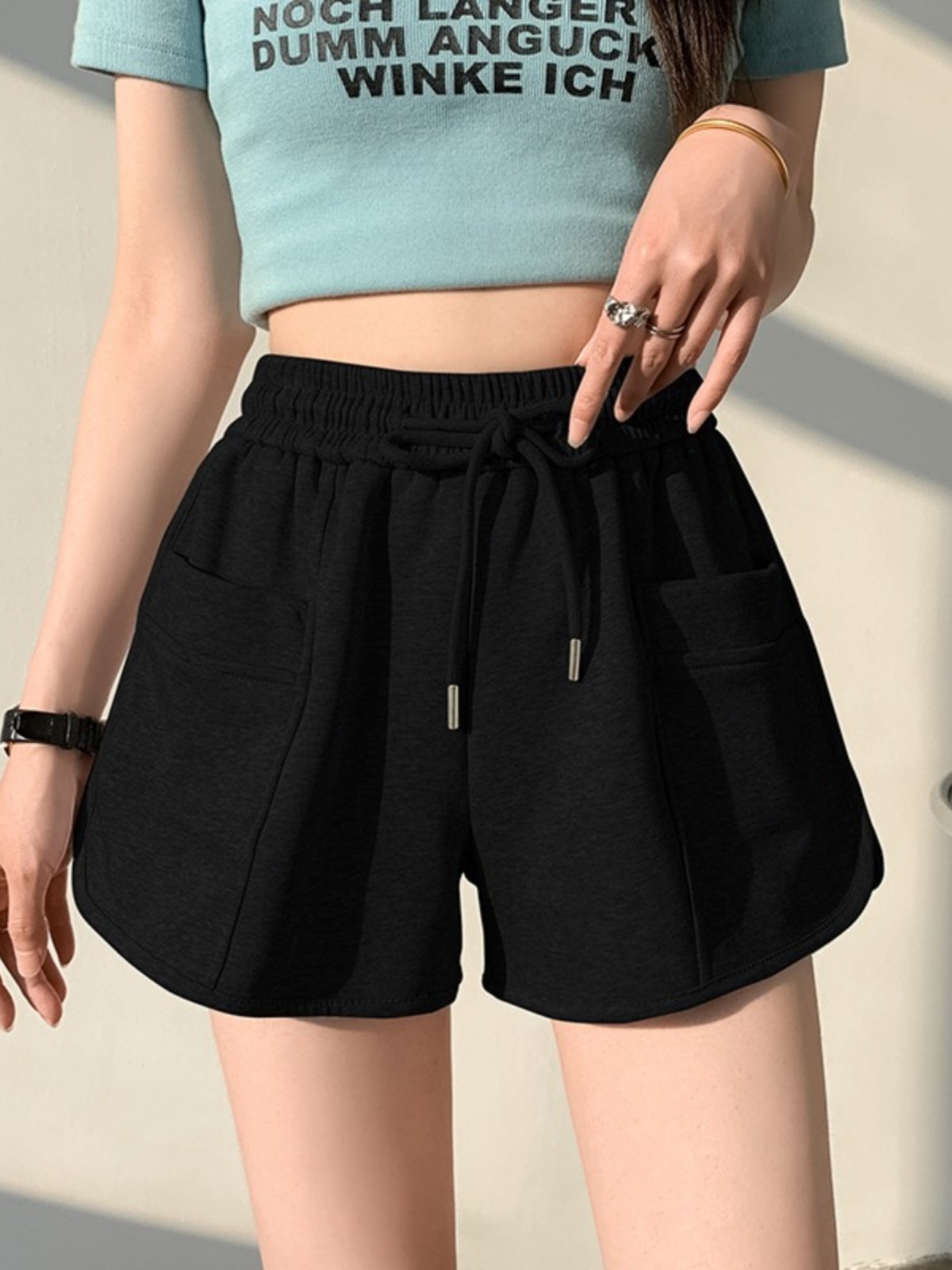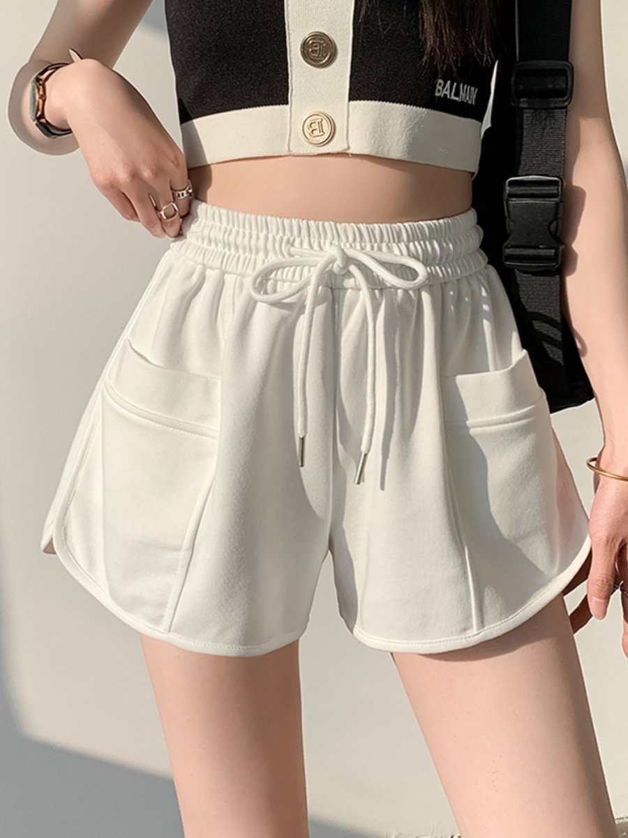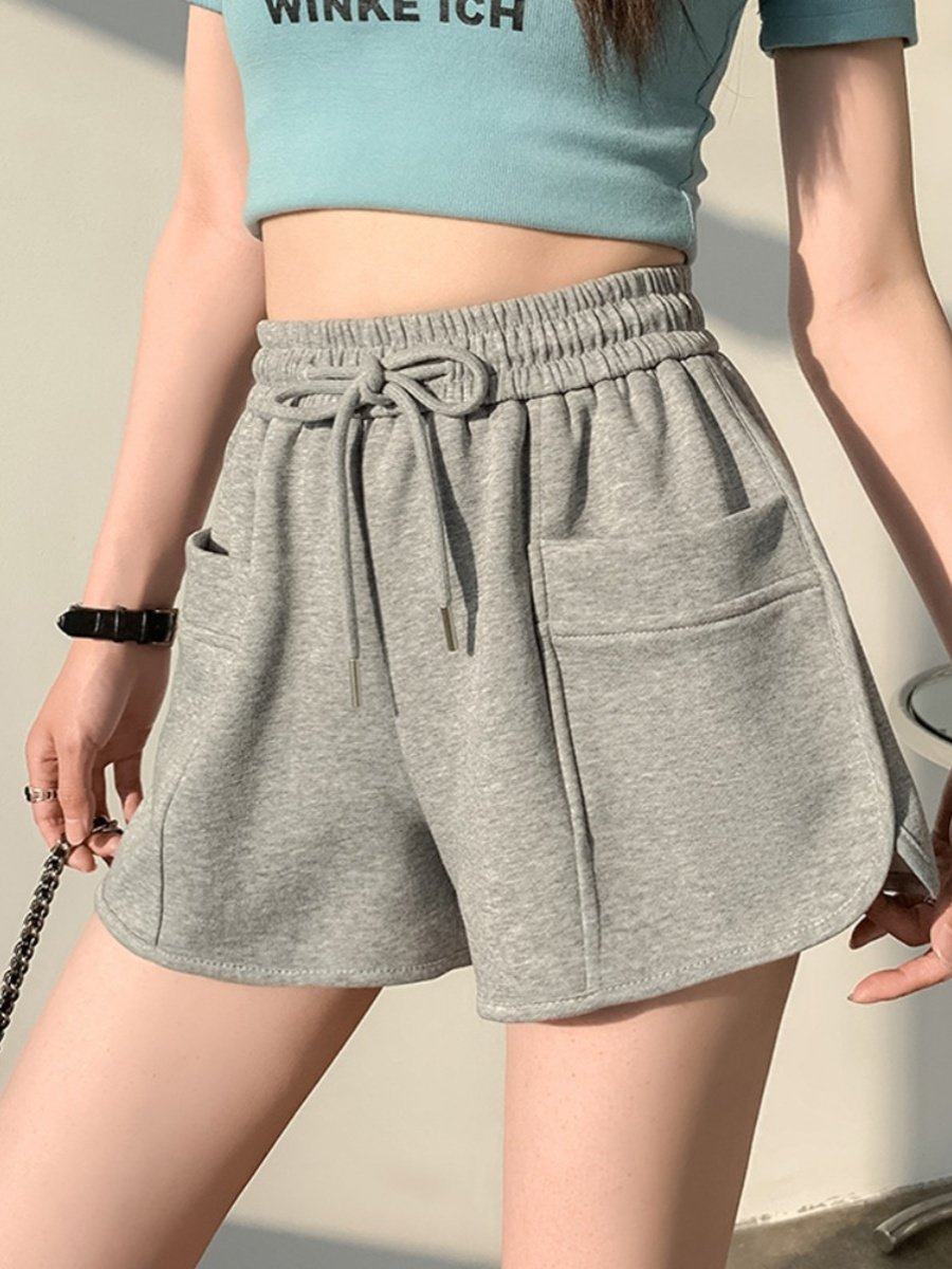 松紧腰纯色阔腿短裤女夏季新款韩版显瘦百搭灰色运动休闲热辣裤潮
