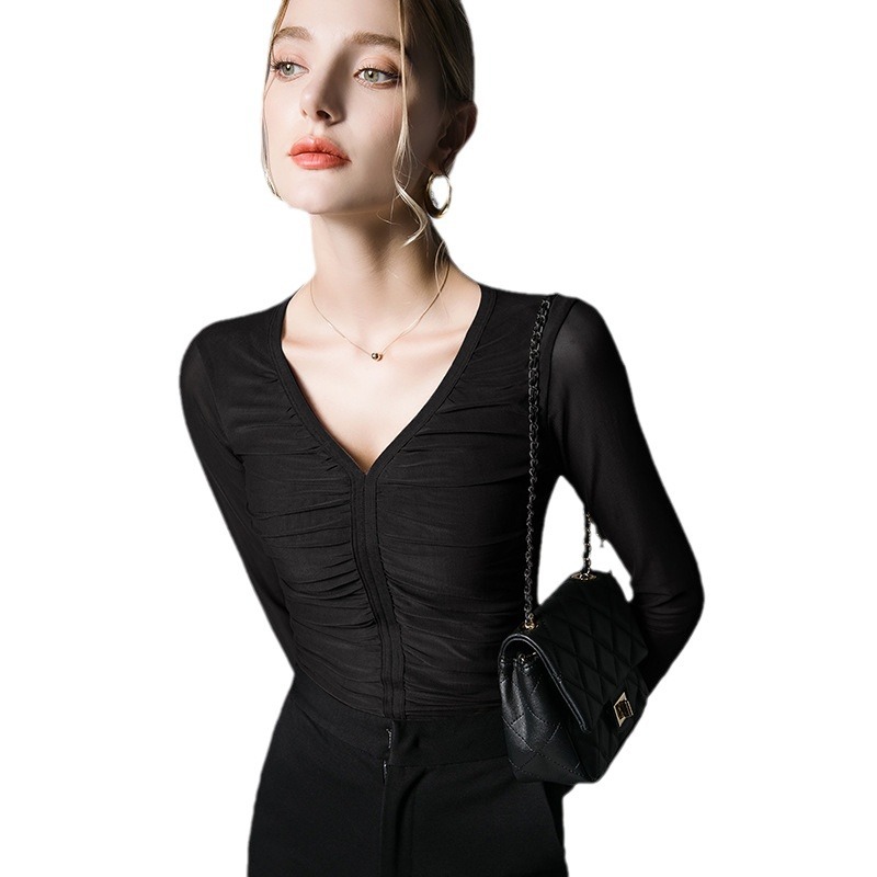网纱套手指拉丁舞练功服成人女修身舞蹈上衣新款长袖交谊国标摩登
