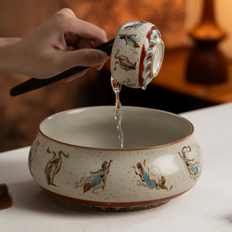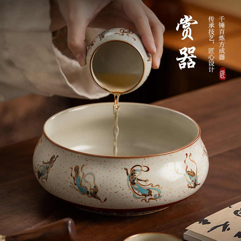 敦煌飞天汝窑茶洗茶杯收纳茶洗缸