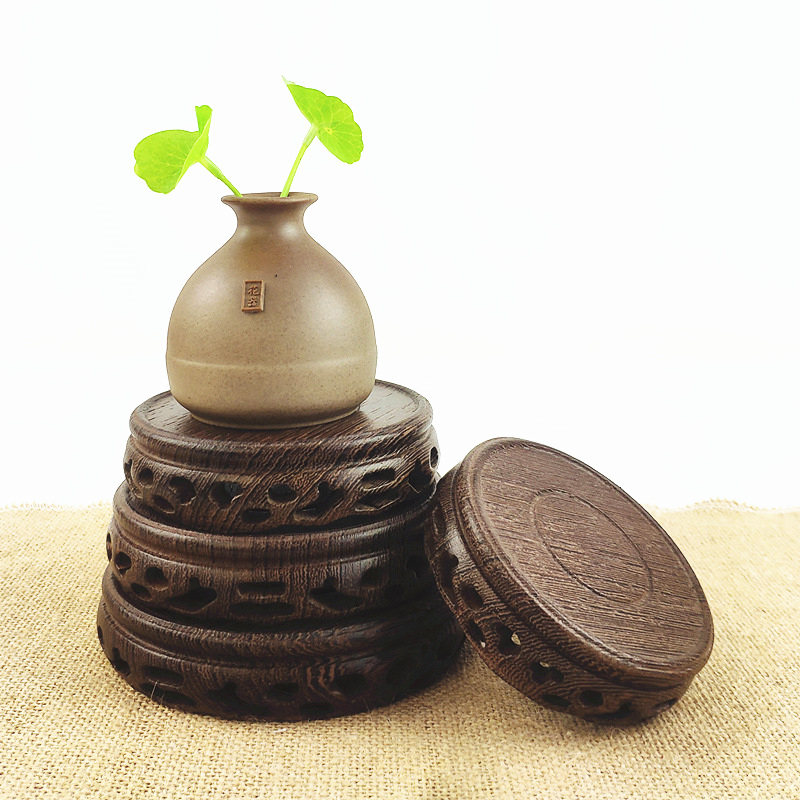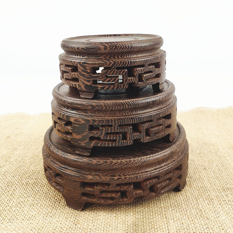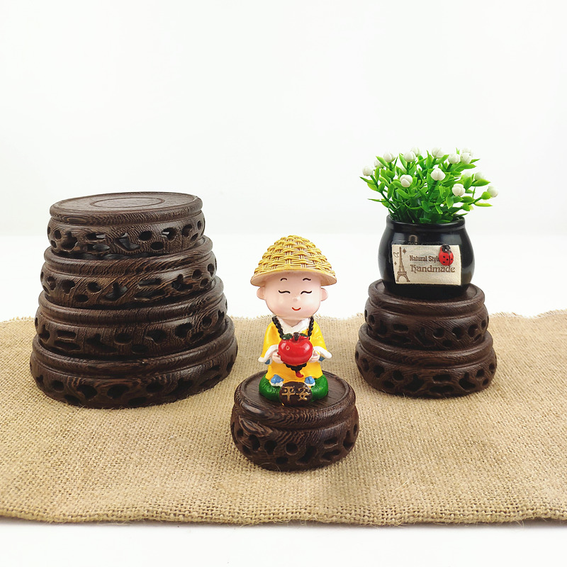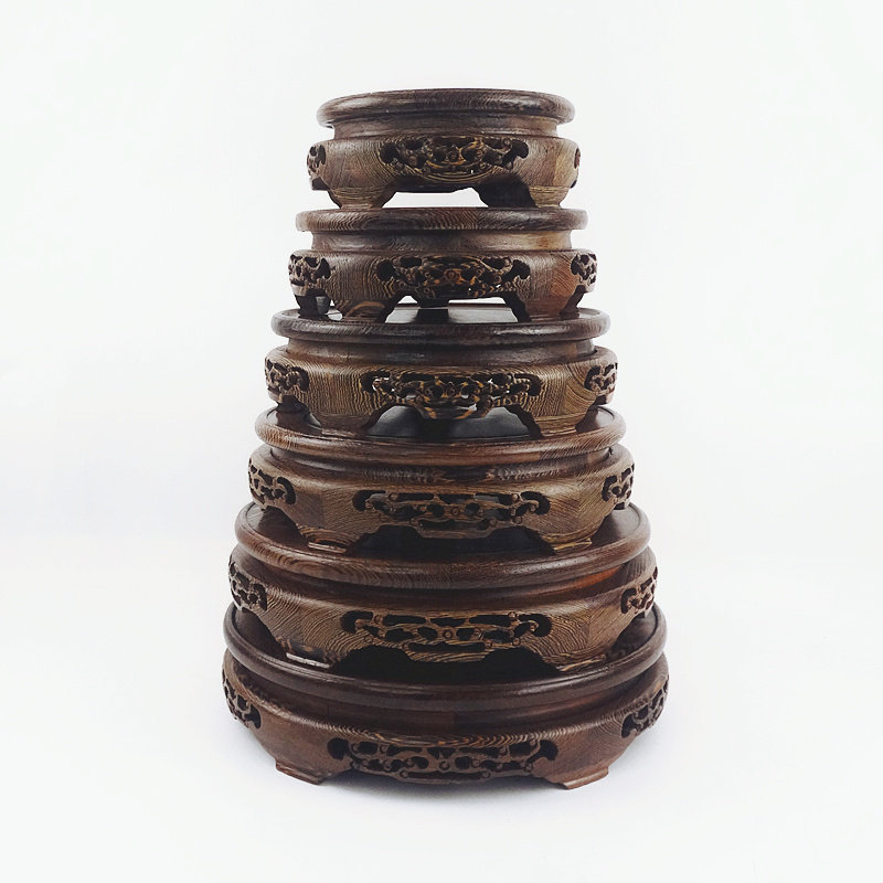 鸡翅木圆形雕刻工艺品佛像花瓶鱼缸花盆底座红木奇石摆件实木木托