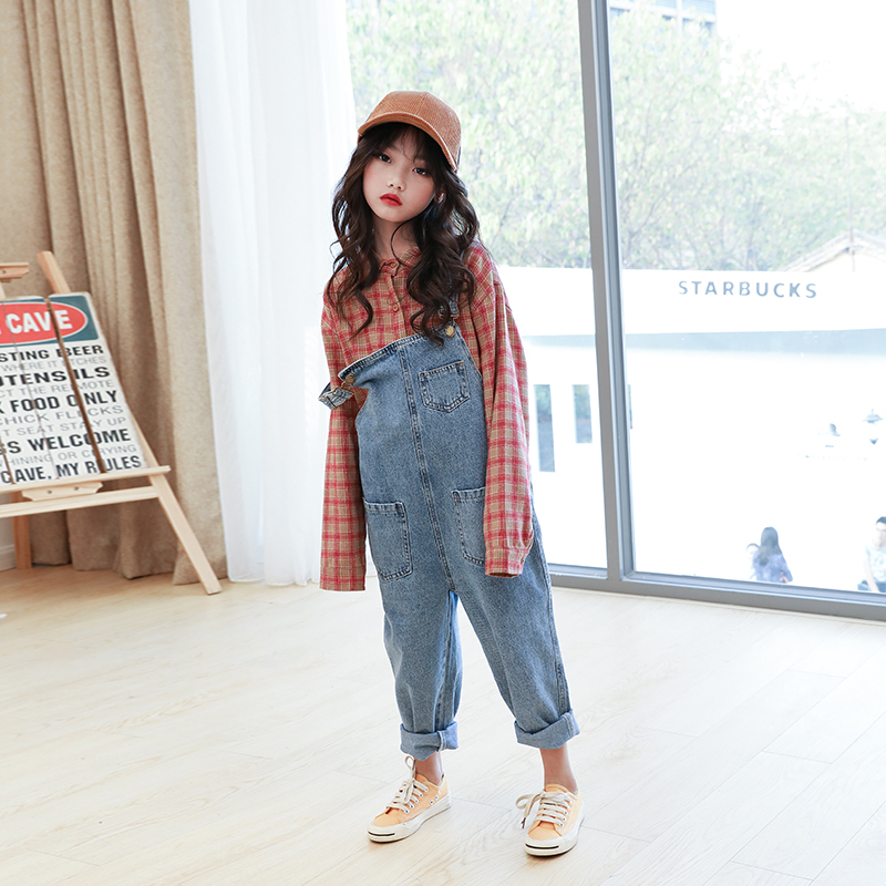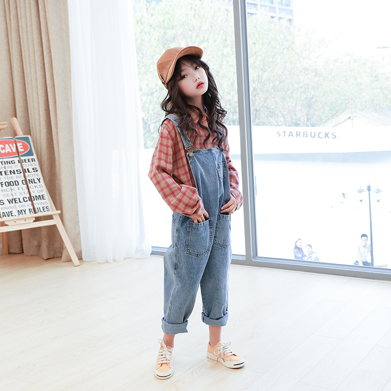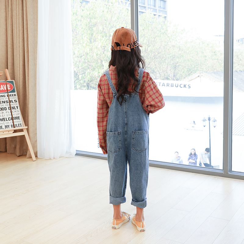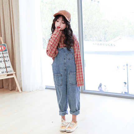 女童牛仔背带裤秋装2025新款女大童韩版洋气宽松休闲哈伦小脚宽松