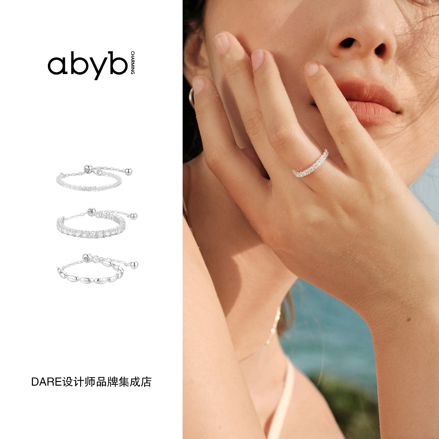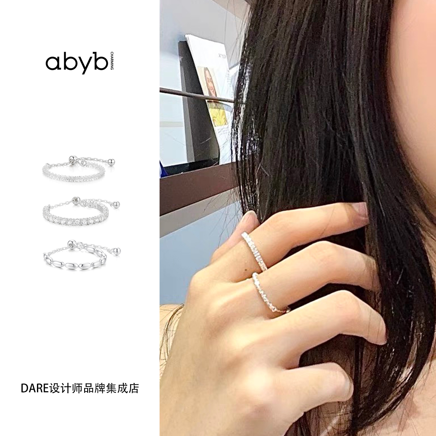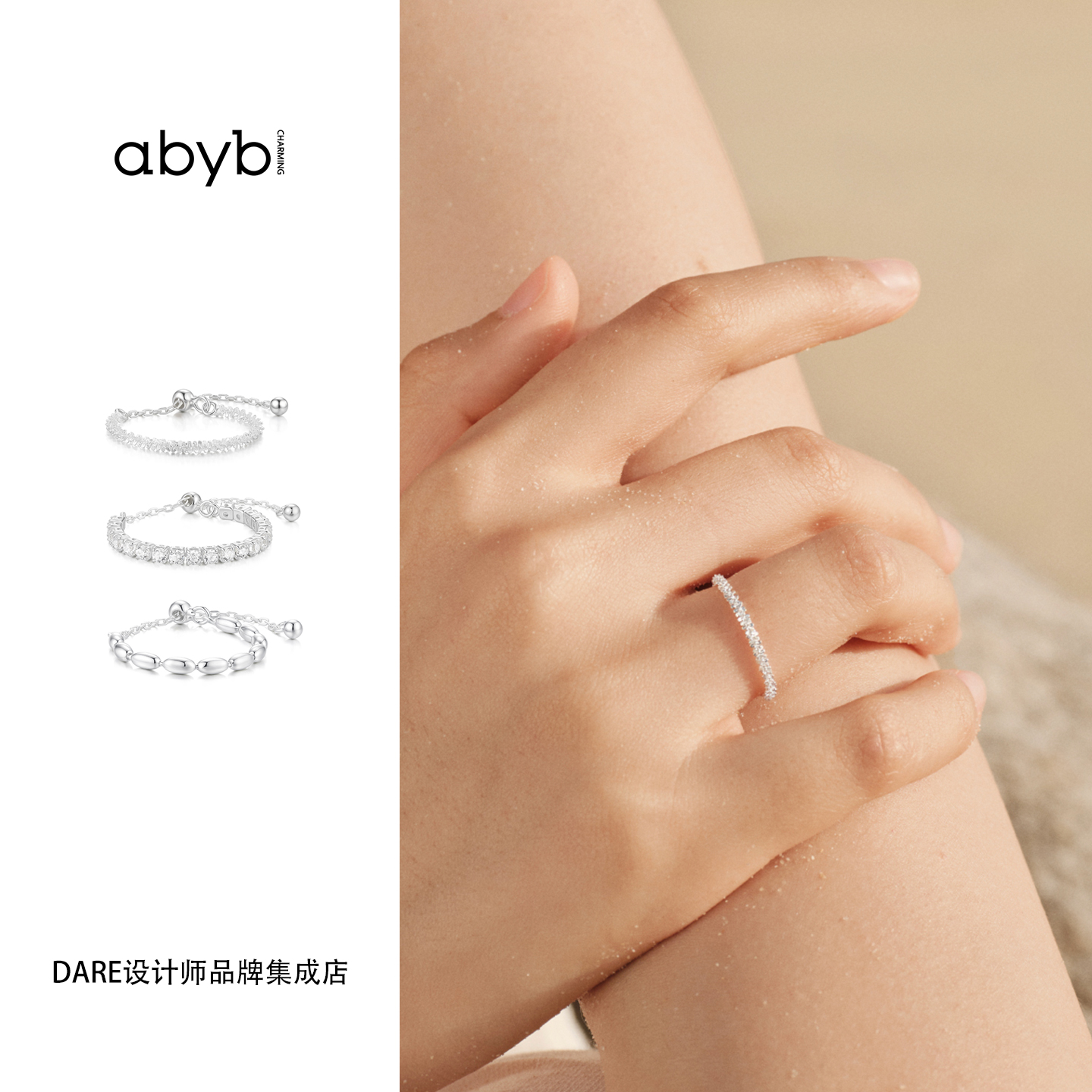 abyb charming抽拉戒指可调节925银方糖星光闪亮原创设计饰品百搭