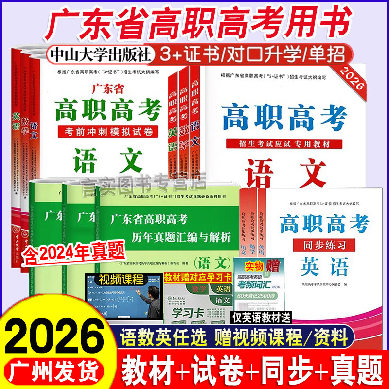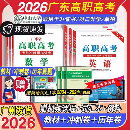 现货】广东高职高考2026广东省3+证书考试语文数学英语词汇考前冲刺模拟试卷历年真题中职生对口招生升学考试复习教材高职高考资料