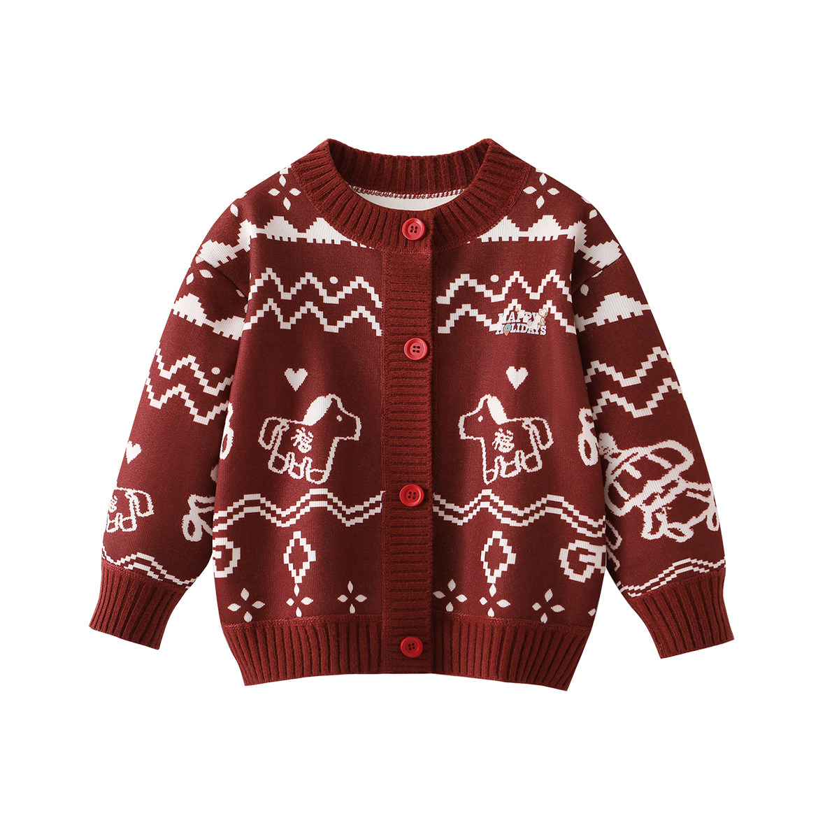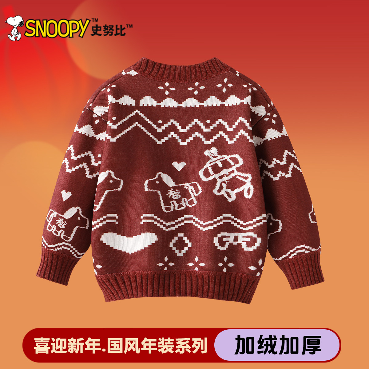 史努比女童冬季开衫毛衣2026新年款儿童拜年服男宝宝加绒打底上衣