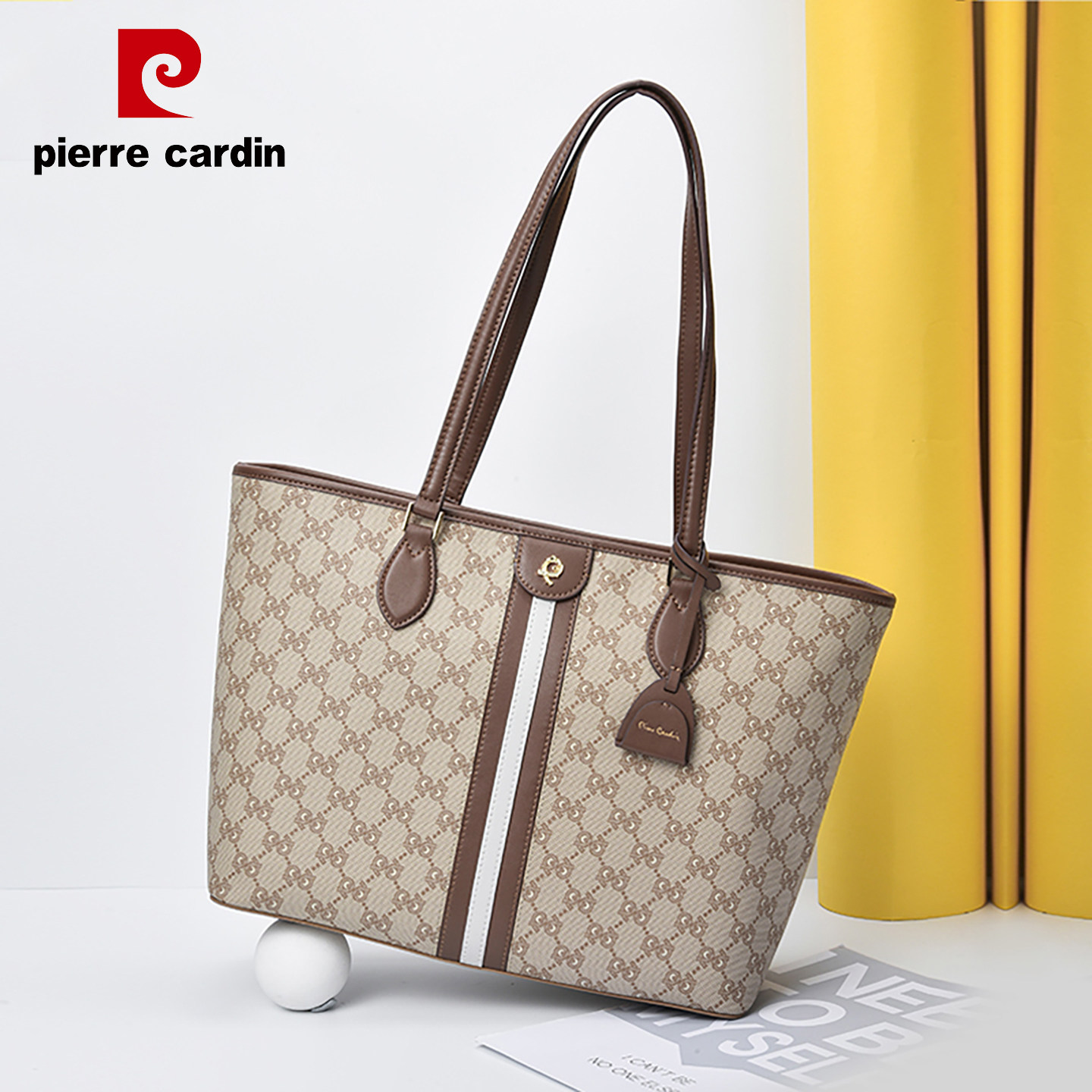 皮尔卡丹印花大容量托特包