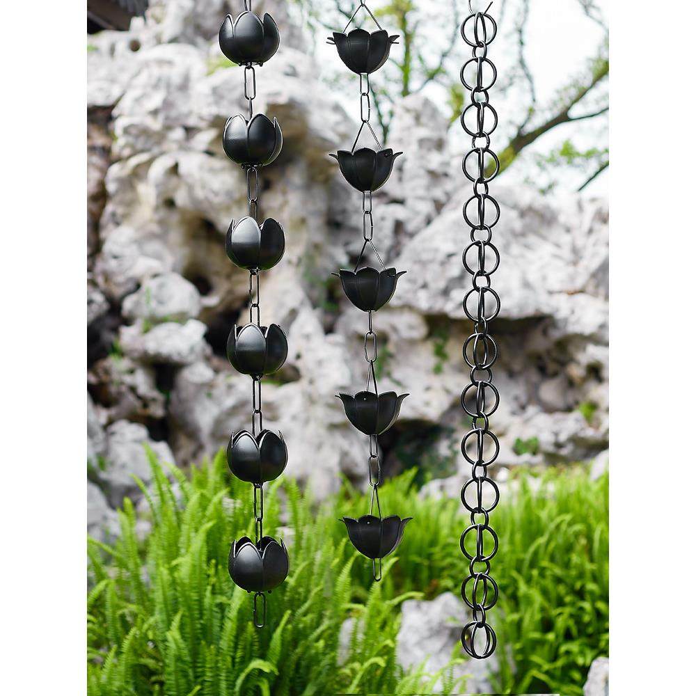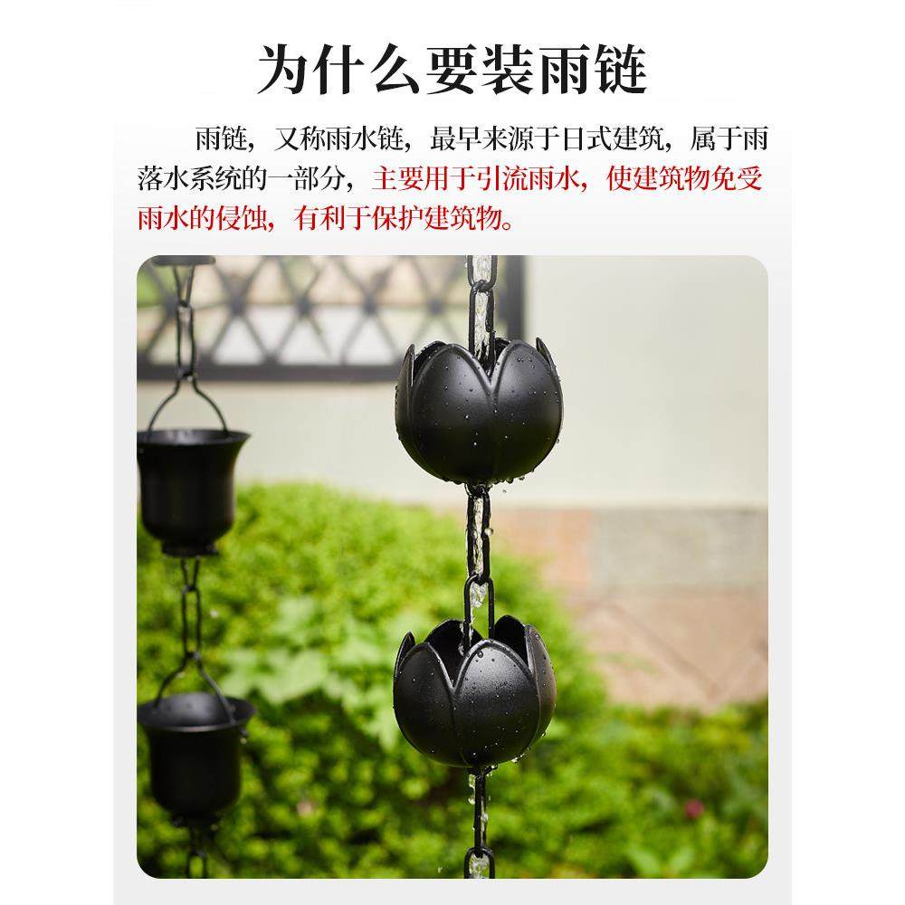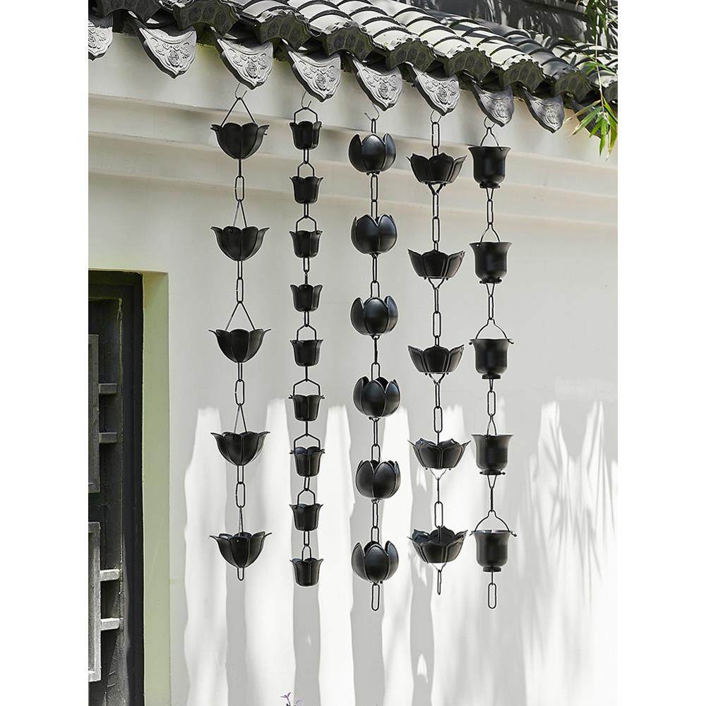 黑色睡莲雨链雨水链中式庭院屋檐排水链民宿天沟引水链景观落水链