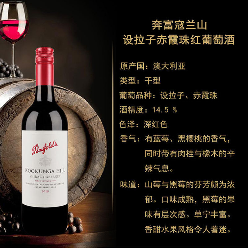 奔富寇兰山干红整箱赤霞珠葡萄酒