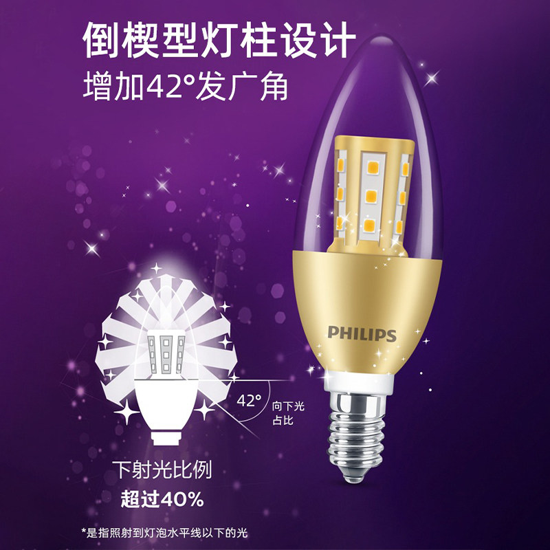 飞利浦照明led节能灯泡尖e14螺口超亮蜡烛灯尖泡吊灯家用超亮欧式