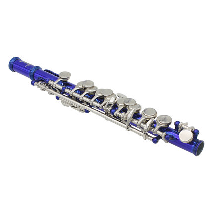 雷德短笛C调白铜管体蓝色(皮盒装)16孔加E键法式按键意大利垫片