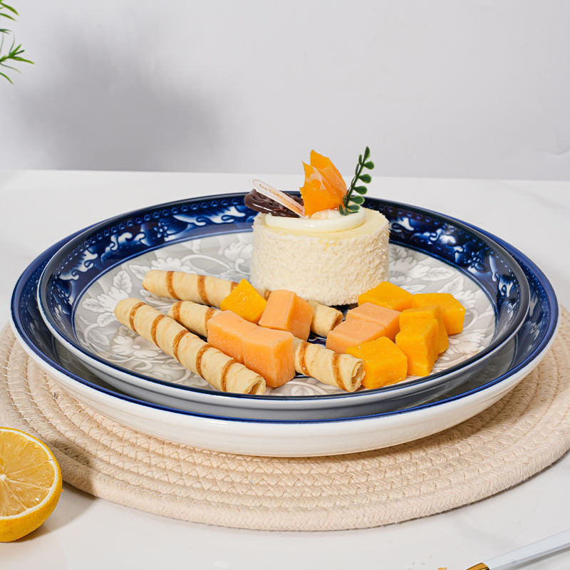 新款中式创意盘子菜盘家用陶瓷青花瓷水果盘饭盘大圆盘碟盘子组合
