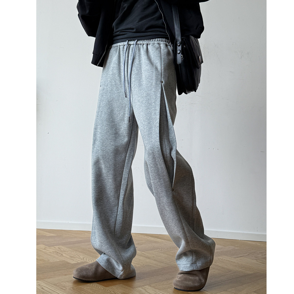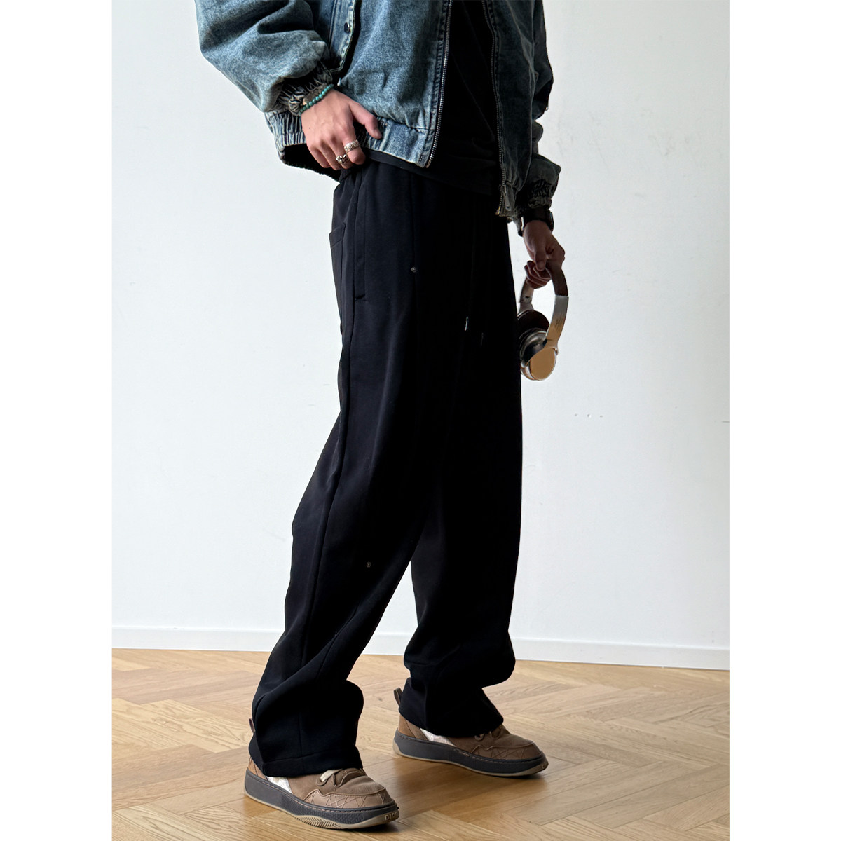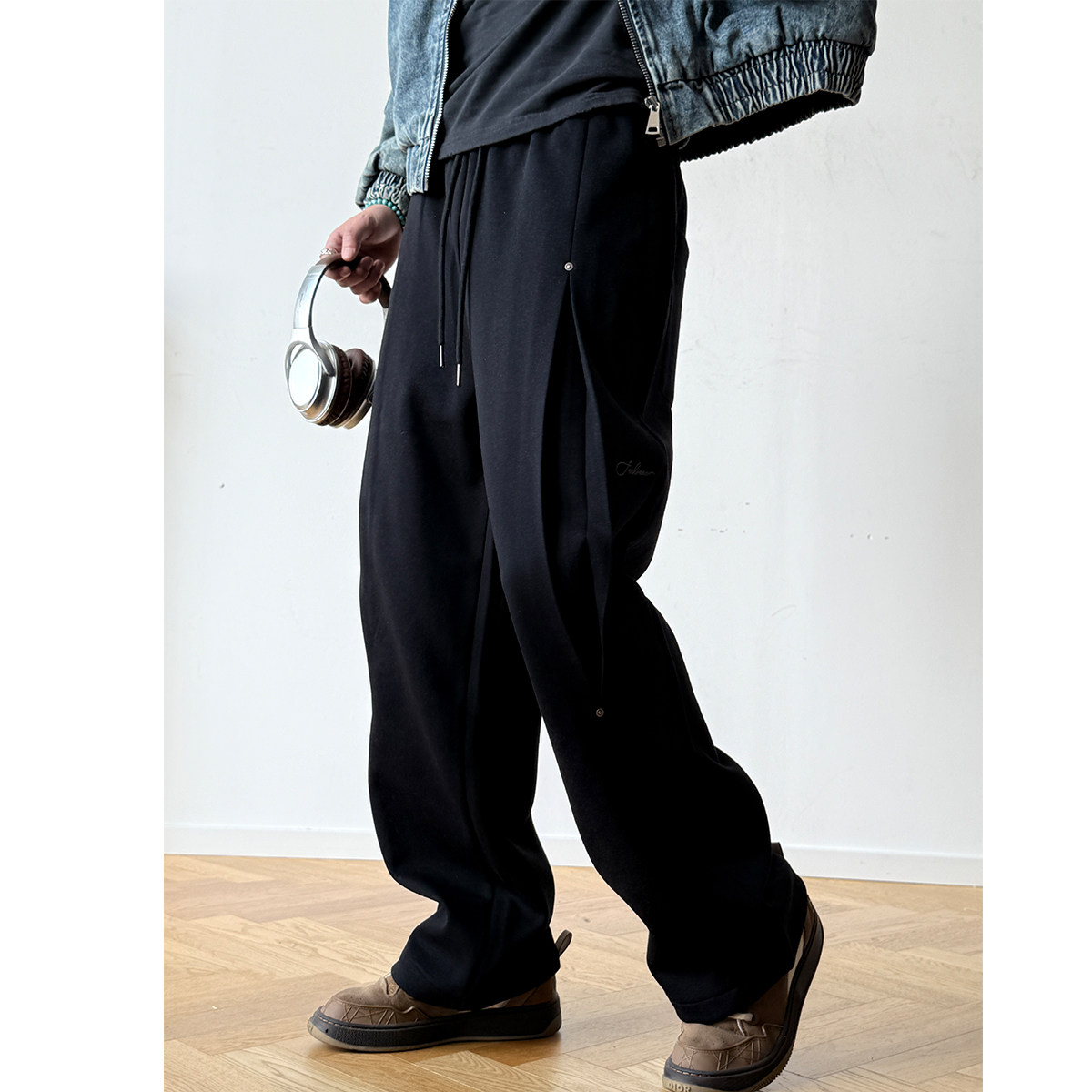 铆钉分褶解构设计宽松直筒卫裤男