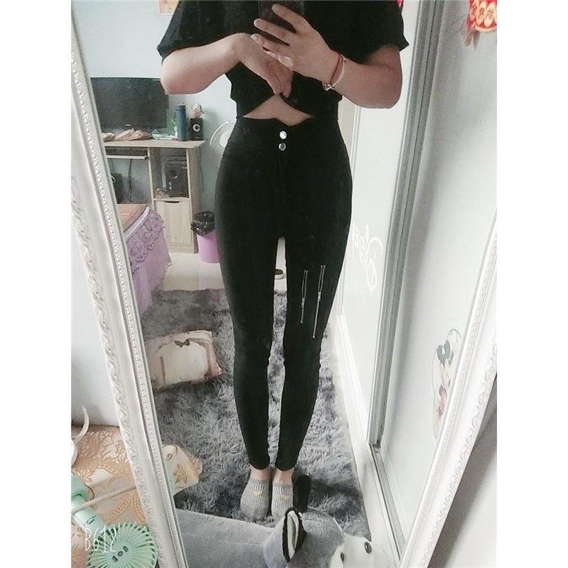 网红2021秋冬新款高腰铅笔裤子加绒加厚打底裤女外穿黑色小脚长裤