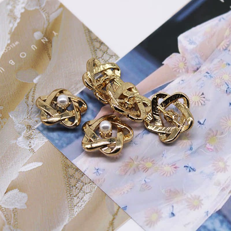 鹏鹏钮扣小香风五角星小珍珠金色金属毛呢外套纽扣大衣百搭扣子