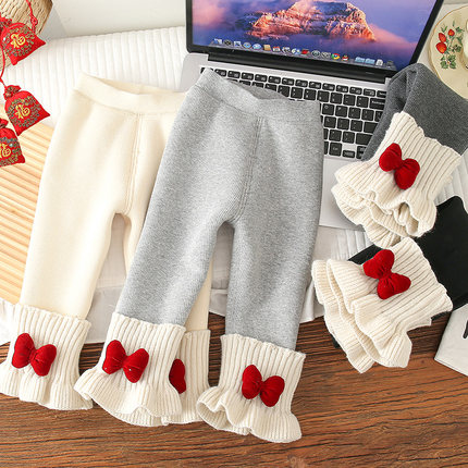 女童加绒加厚打底裤2025新款儿童外穿女宝宝儿童蝴蝶结冬季打底裤