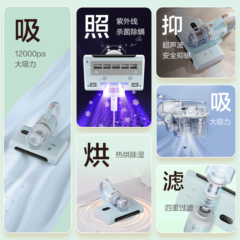 海尔除螨仪家用床上吸尘器紫外线杀菌机小型除螨虫清洁新款大吸力