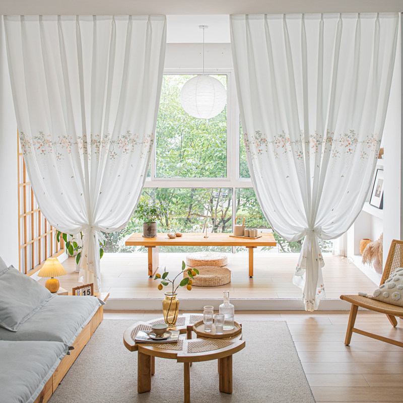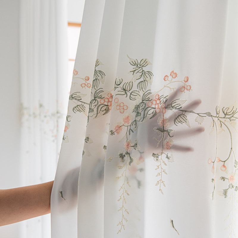 透光不透人隔断茶室田园绣花窗帘