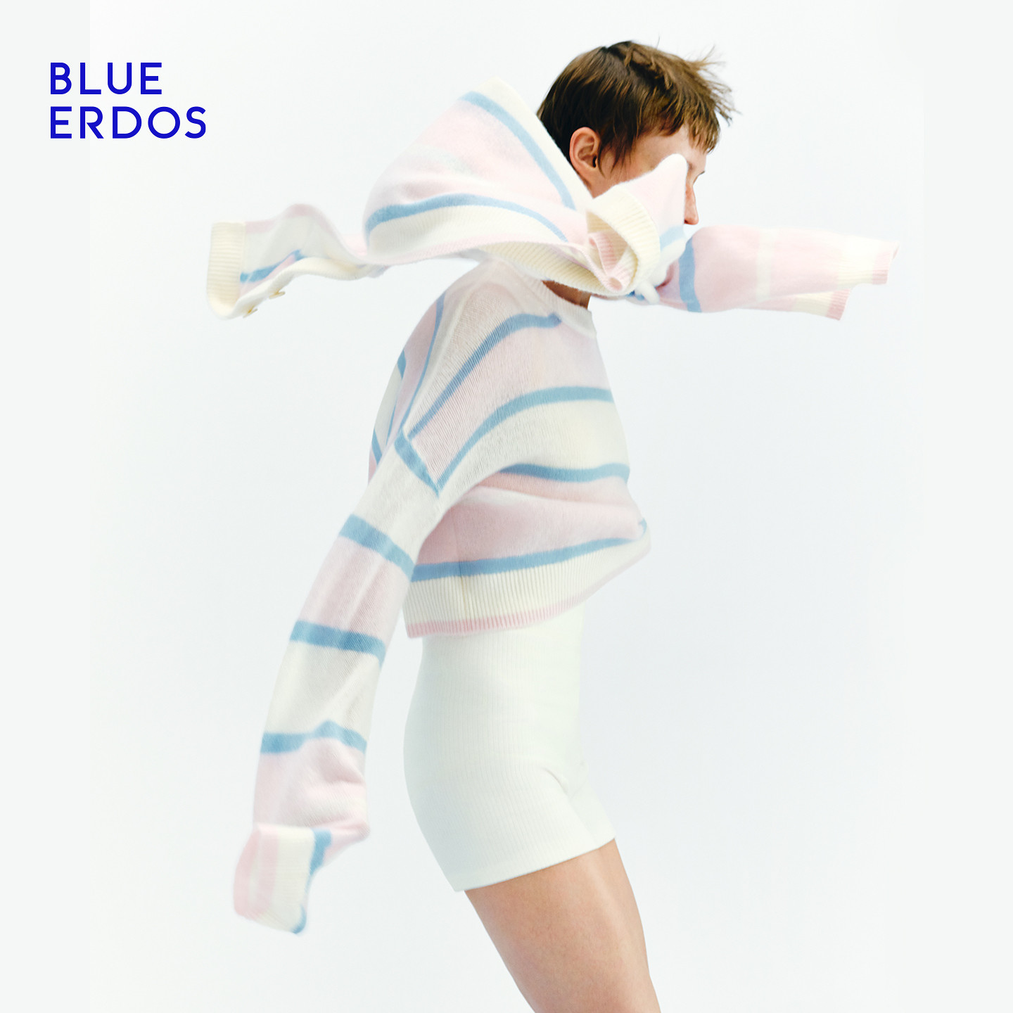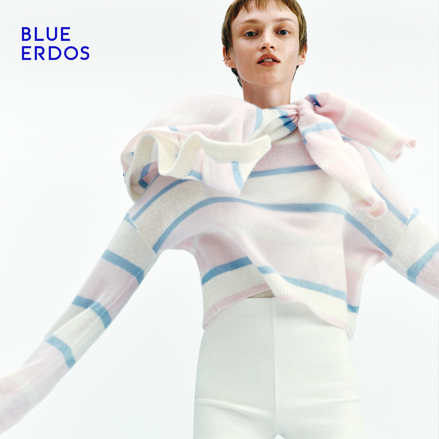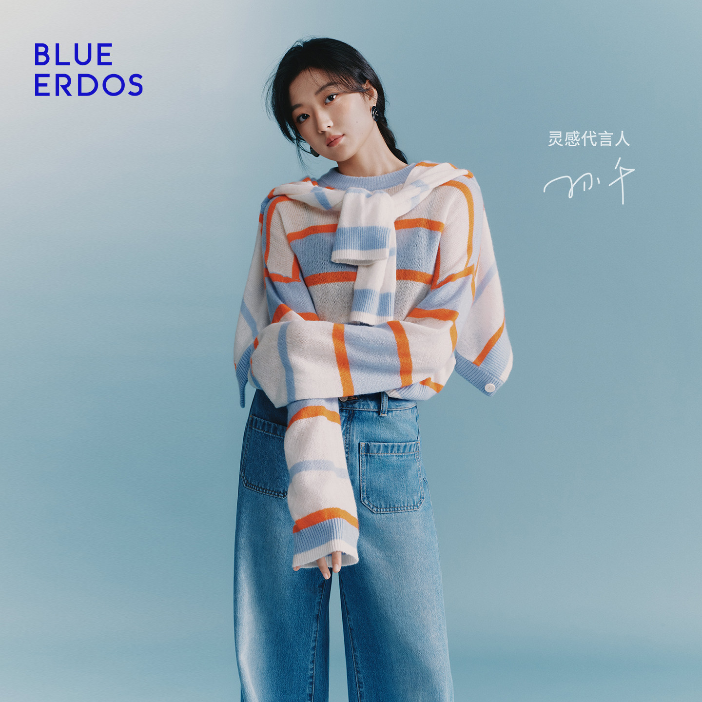 【孙千同款】BLUE ERDOS冬季流光风空气羊绒撞色条纹圆领针织衫