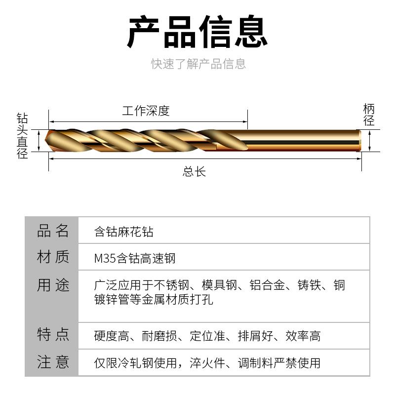 麻花钻头打孔钢铁不锈钢专用直柄麻花钻套装合金含钴转头钻孔电钻