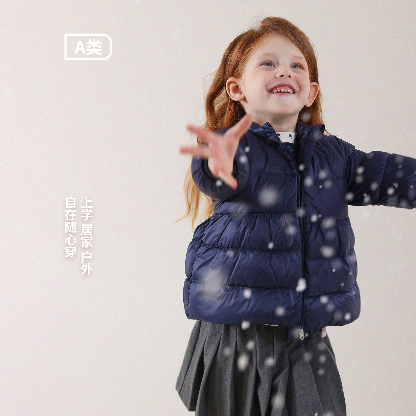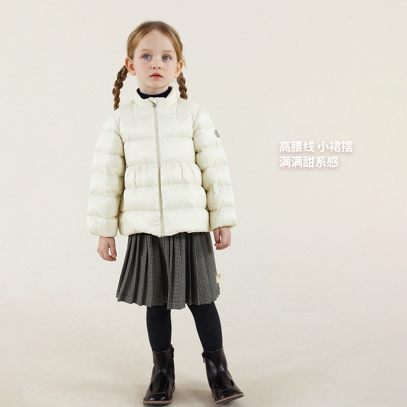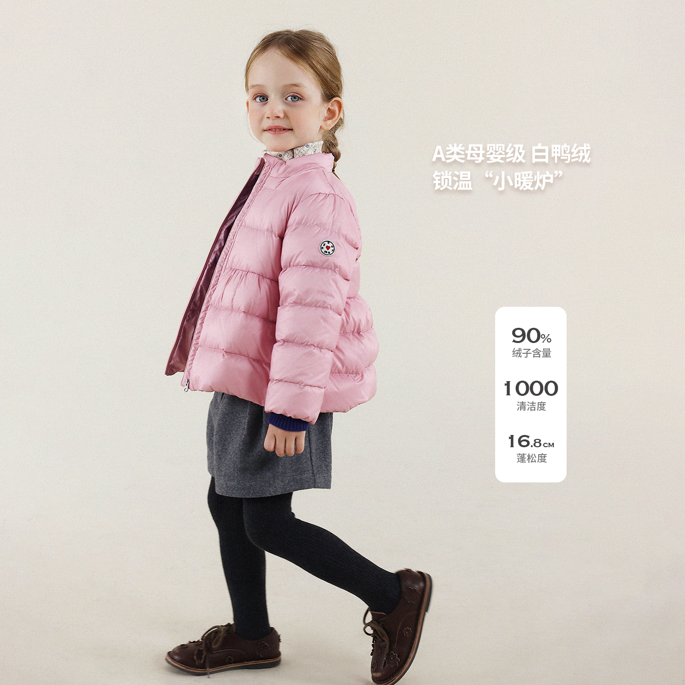 允儿妈女童冬季小众90白鸭绒立领花苞羽绒服儿童秋冬短款保暖外套