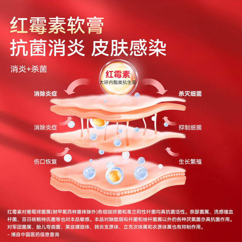 【自营】【川石】红霉素软膏1%*8g*1支/盒⭐15g祛痘印耳洞发炎唇炎痤疮抗菌消炎抗感染