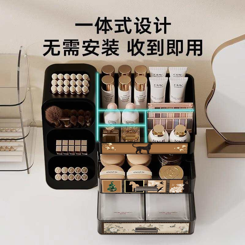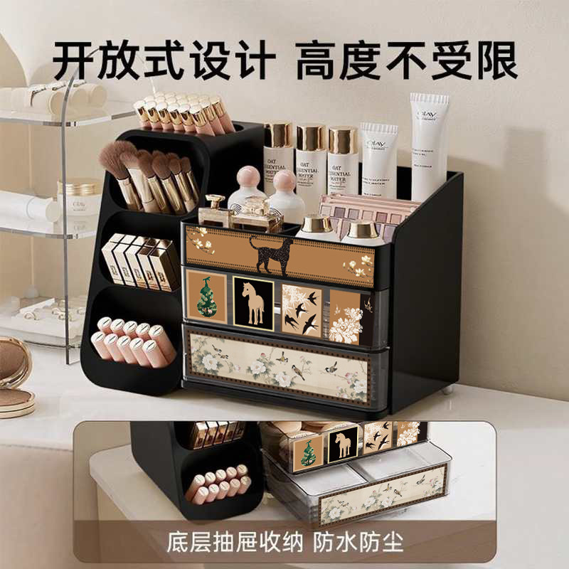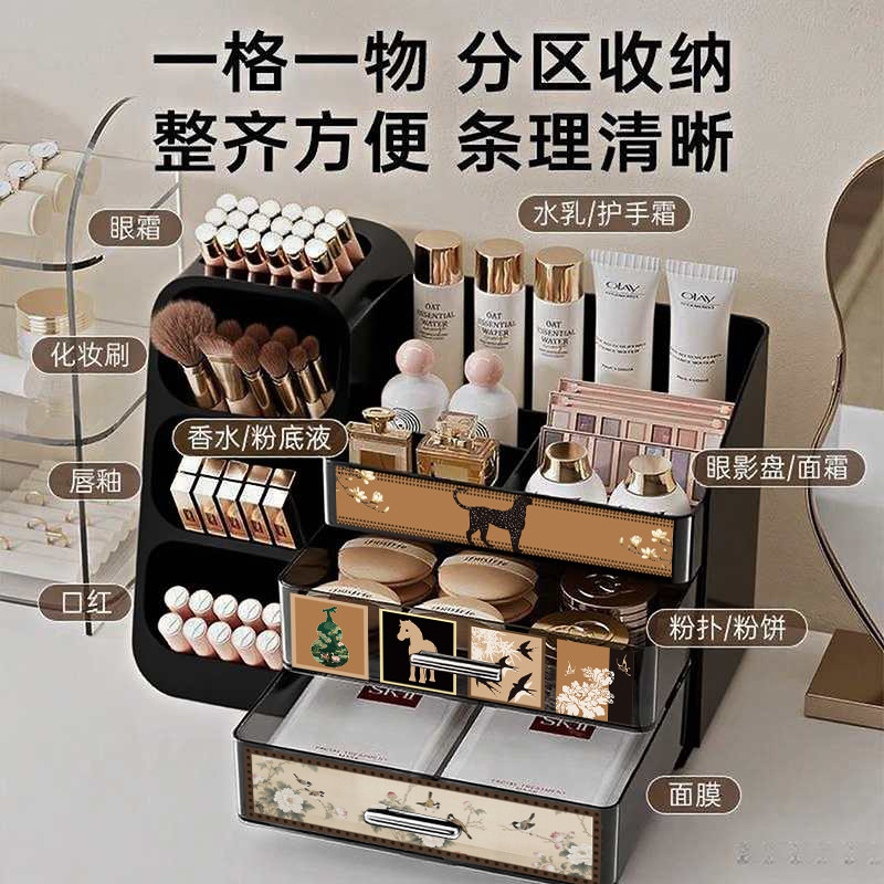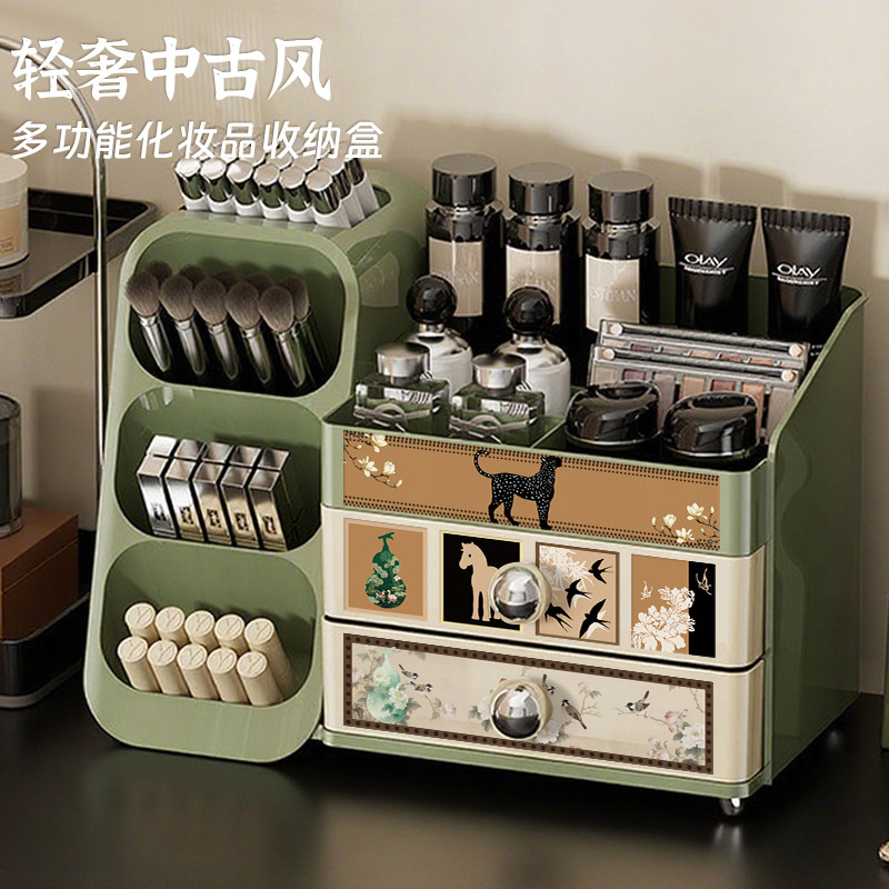 中古风化妆品收纳盒桌面高级感梳妆台护肤品口红眉笔大容量置物架