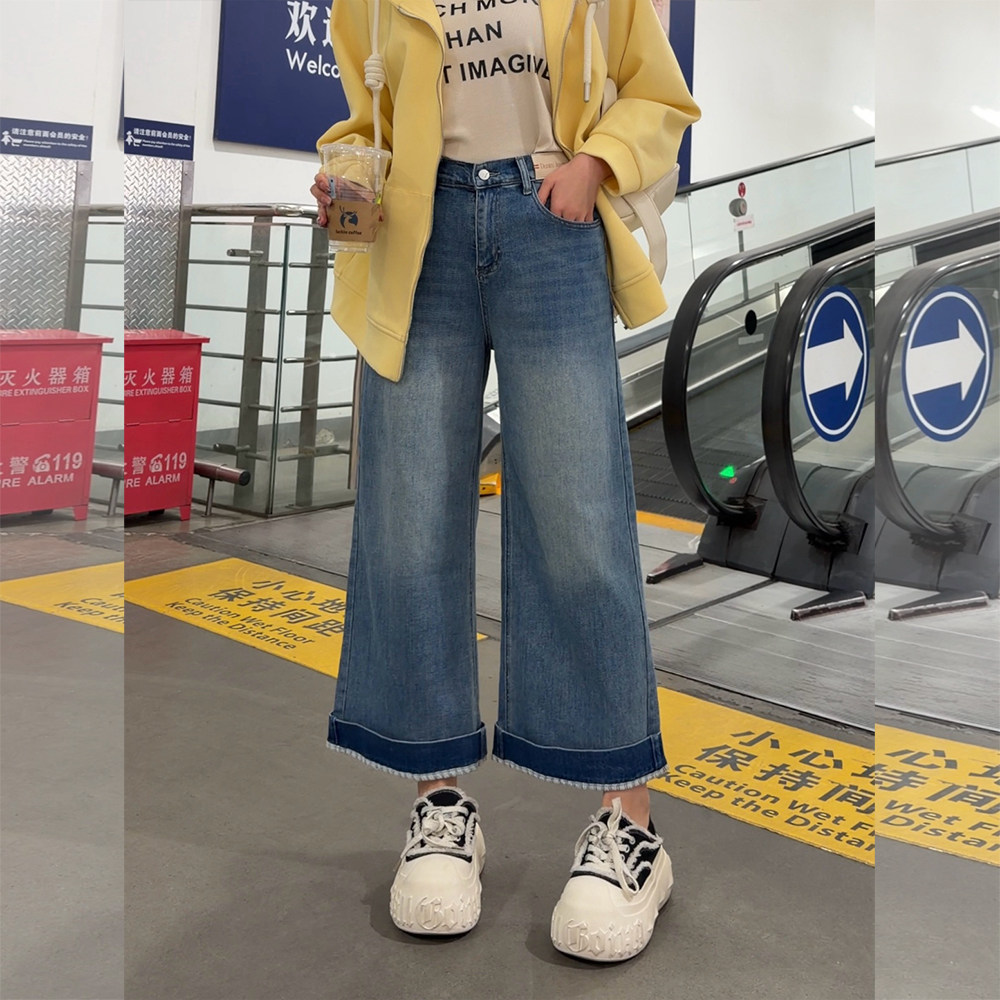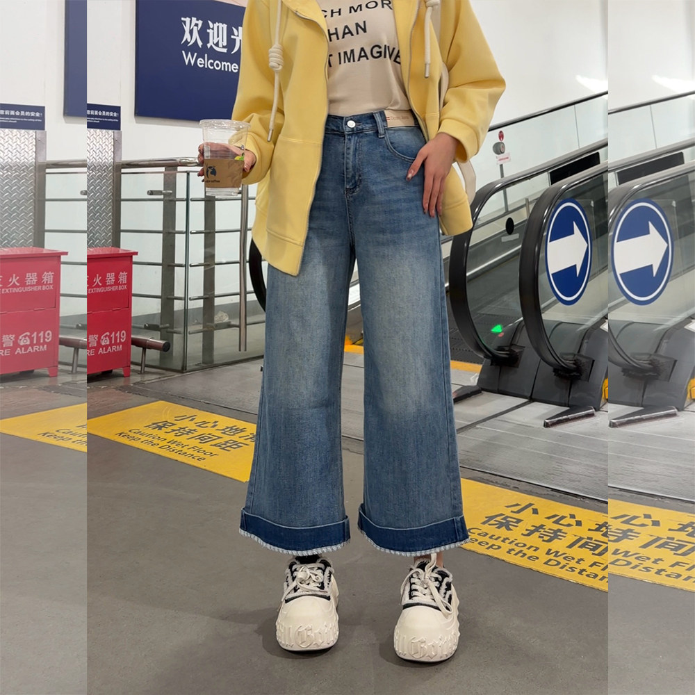 【2026春上新】胖mm显瘦牛仔挽边奶奶裤休闲9分裤大码女装_T028