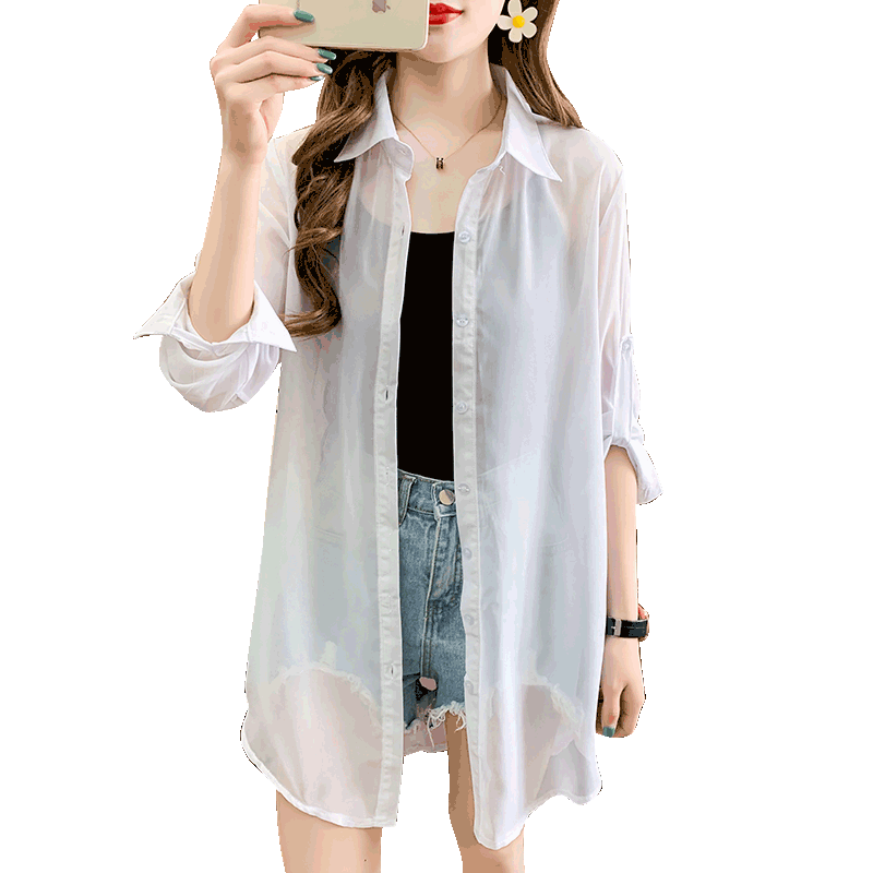 宽松韩版单排长袖雪纺防晒衣