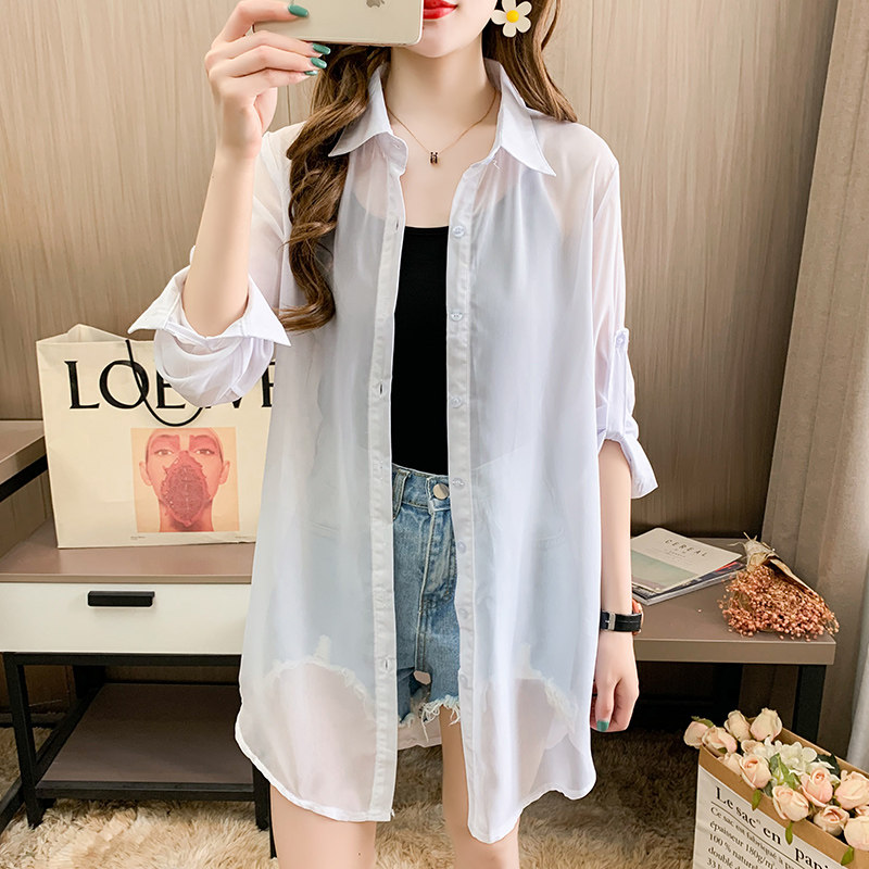 雪纺防晒衬衫女2023夏季新款宽松显瘦开衫中长款空调衫外搭小披肩