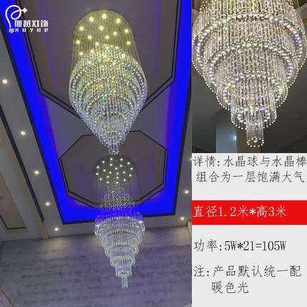 欧式大厅客厅水晶灯大吊灯旋转楼梯间复式楼别墅轻奢灯挑空长吊灯