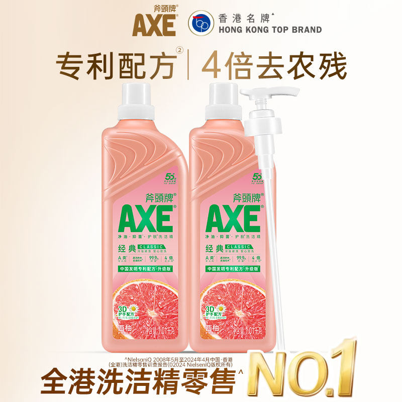 AXE斧头牌西柚洗洁精2瓶装食品去油污农残家用级官方旗舰店1.01kg