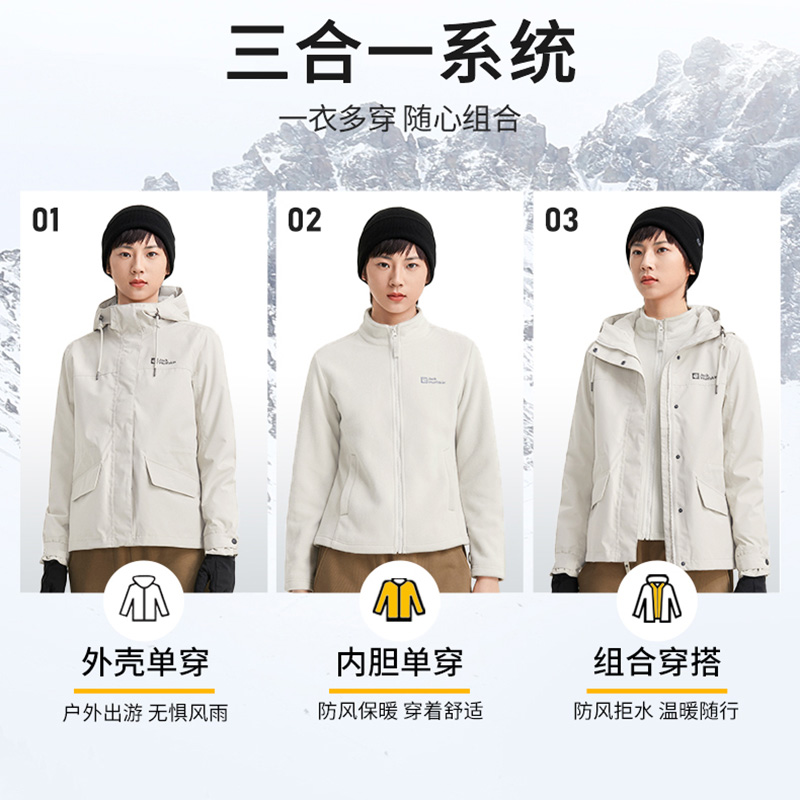 狼爪官方冲锋衣女士冬季户外防水外套加厚抓绒内胆三合一5120243