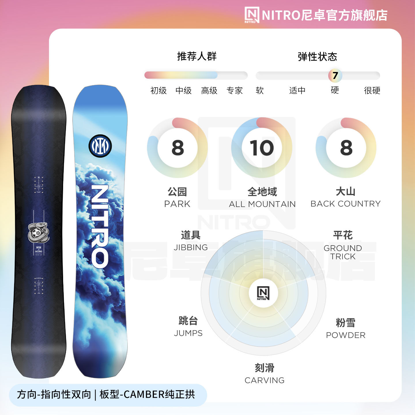 NITRO尼卓单板滑雪板TEAM X INTER国际米兰联名款公园滑行单板男