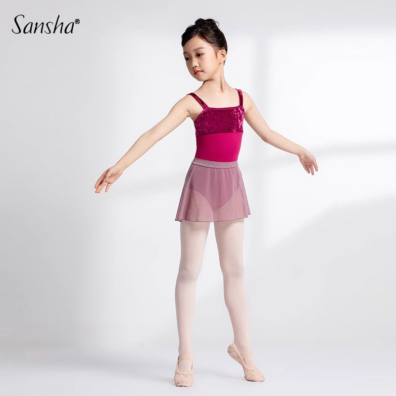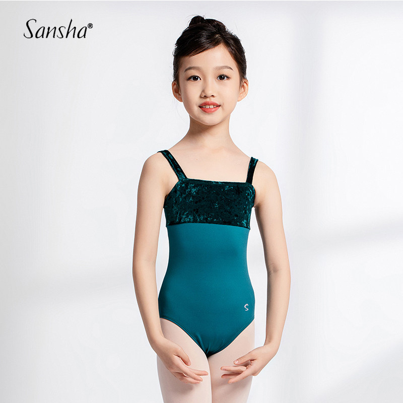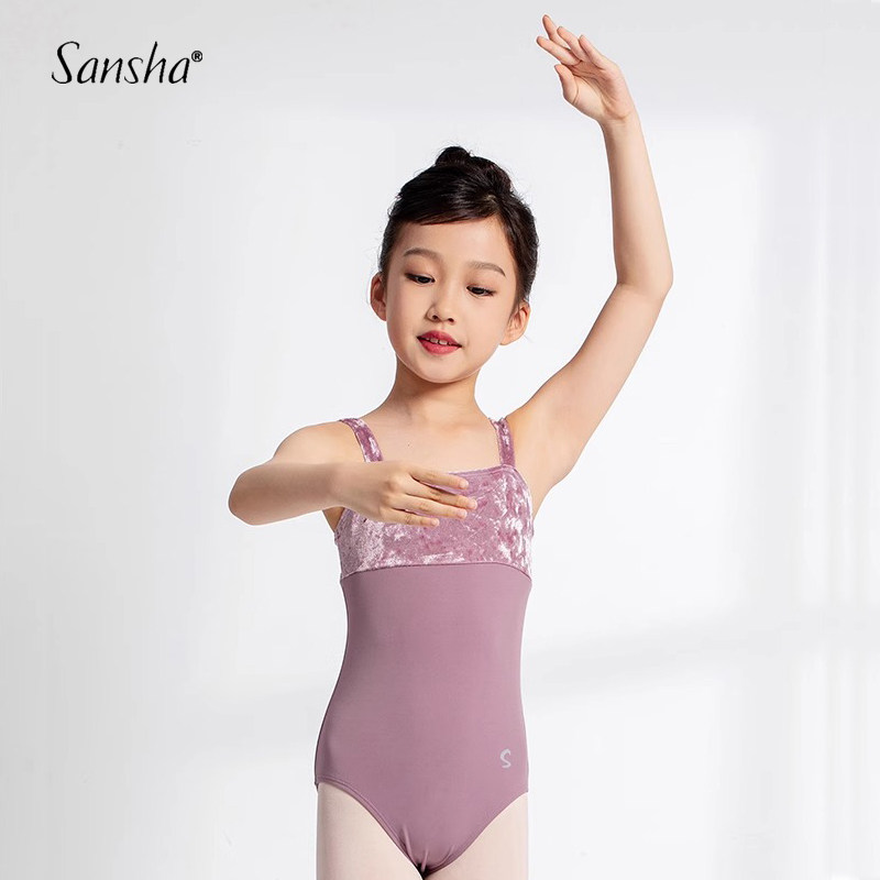 sansha三沙女童吊带舞蹈练功培训艺考形体训练芭蕾连体丝绒体操服