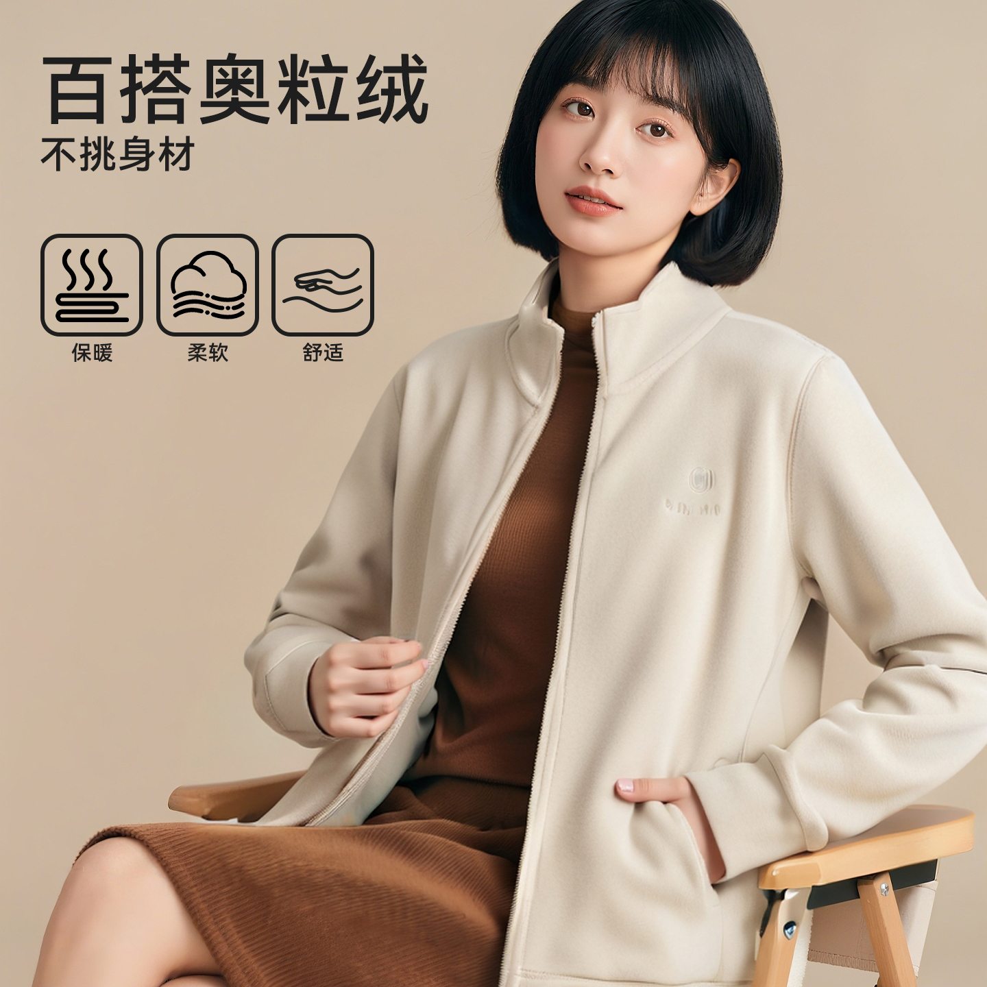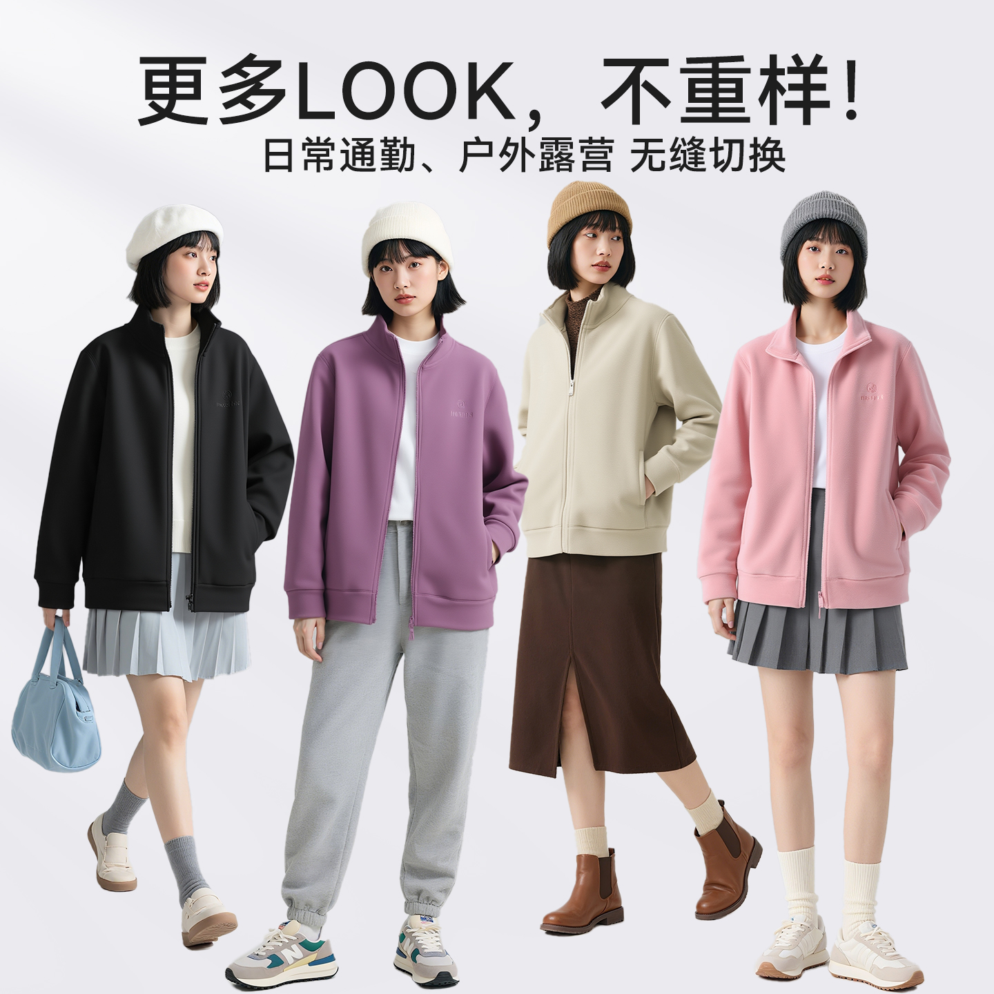 摇粒绒加厚立领外套女秋冬拉链卫衣户外运动冲锋衣内胆休闲抓绒衣