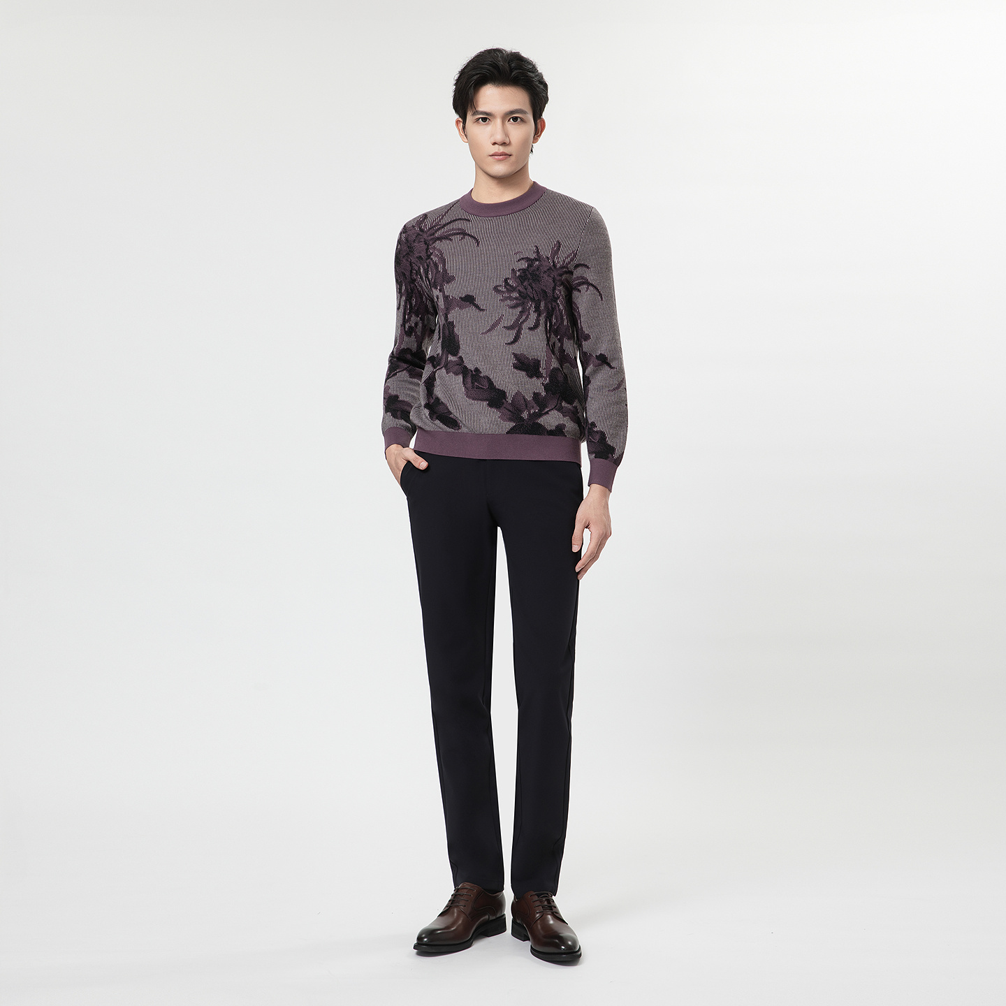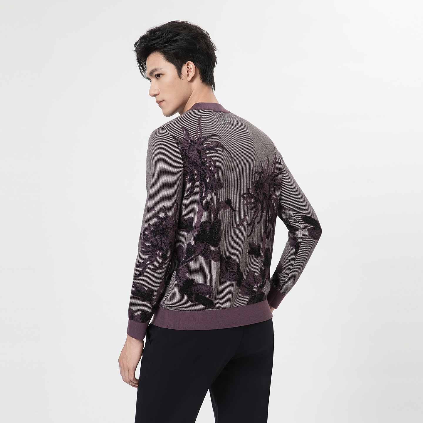 【商场同款】金利来新款圆明园系列男士针织衫紫菊图案套头圆领