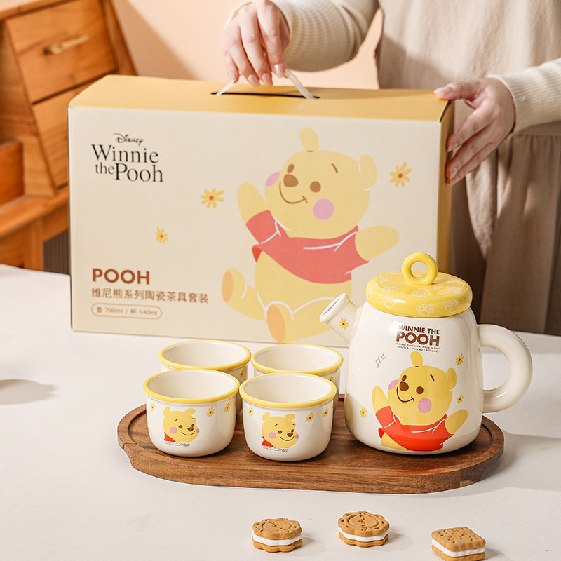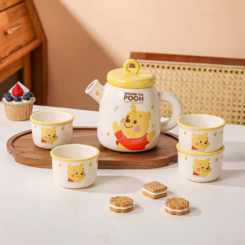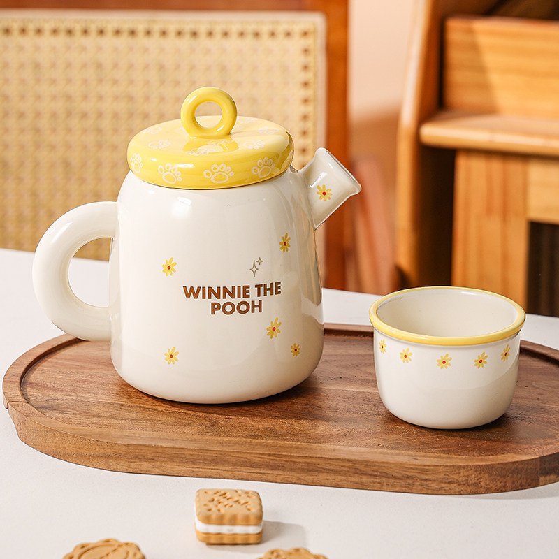 迪士尼维尼熊陶瓷茶水分离喝茶杯子茶壶茶具泡茶家用套装围炉煮茶