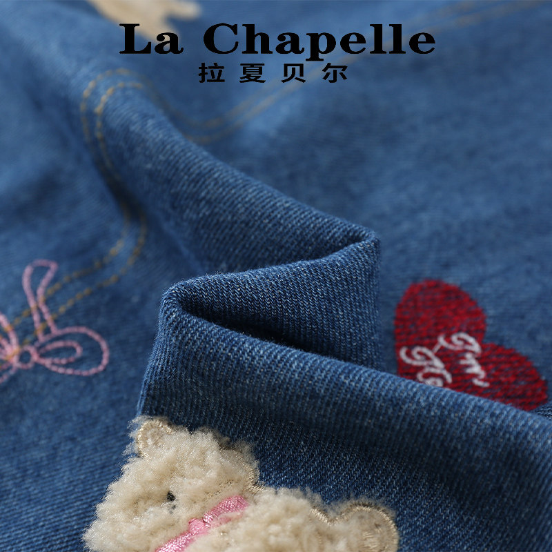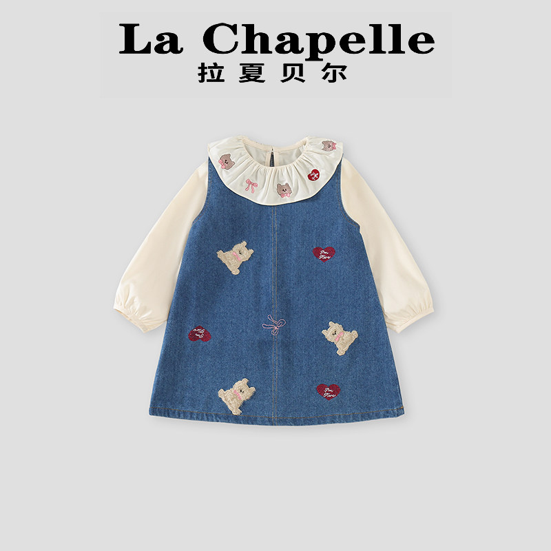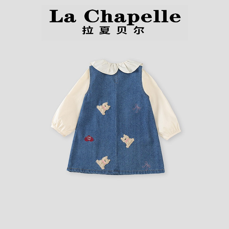 拉夏贝尔女童牛仔连衣裙春装女宝宝时尚可爱娃娃领儿童春秋两件套
