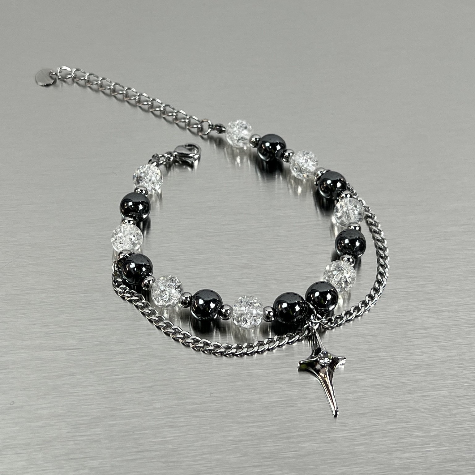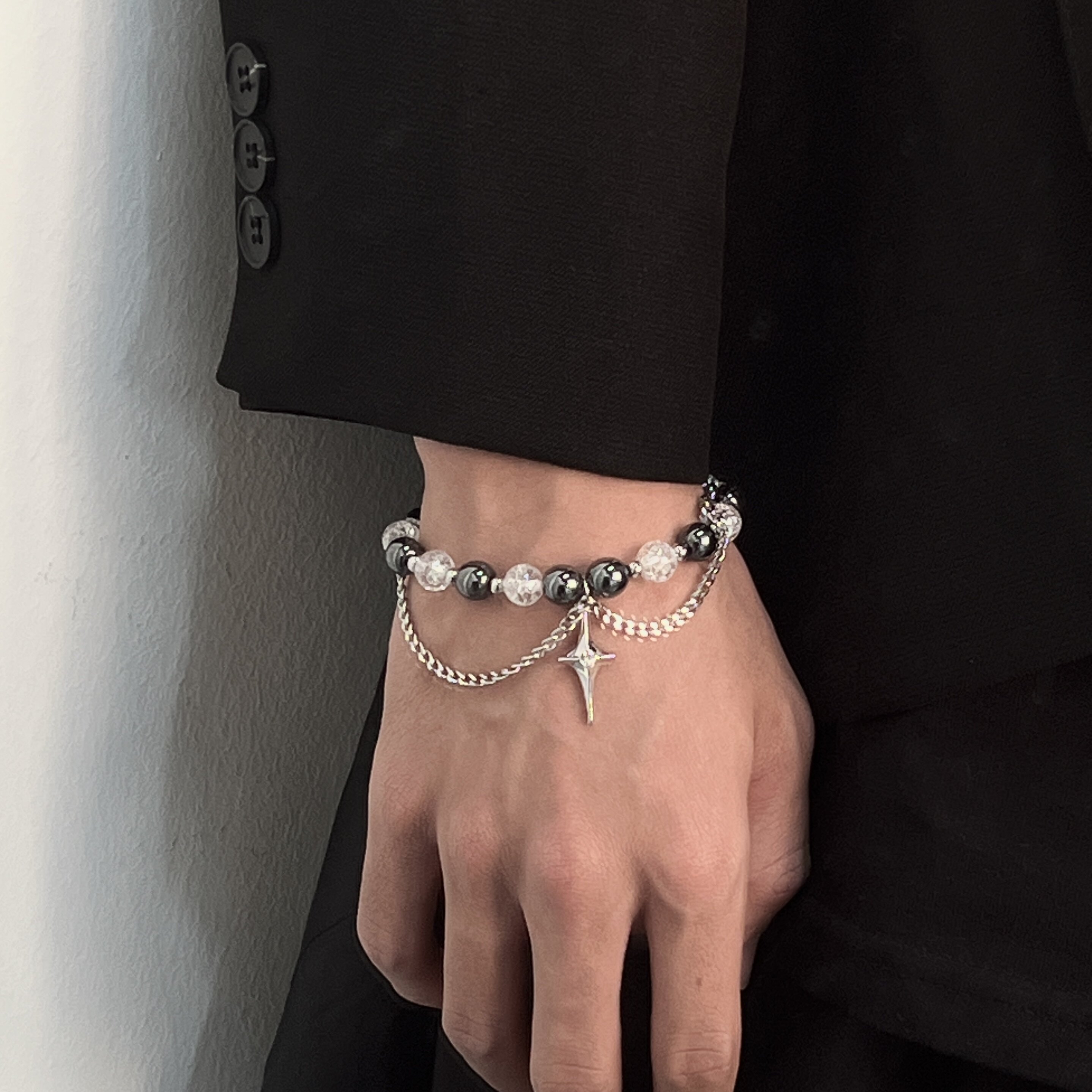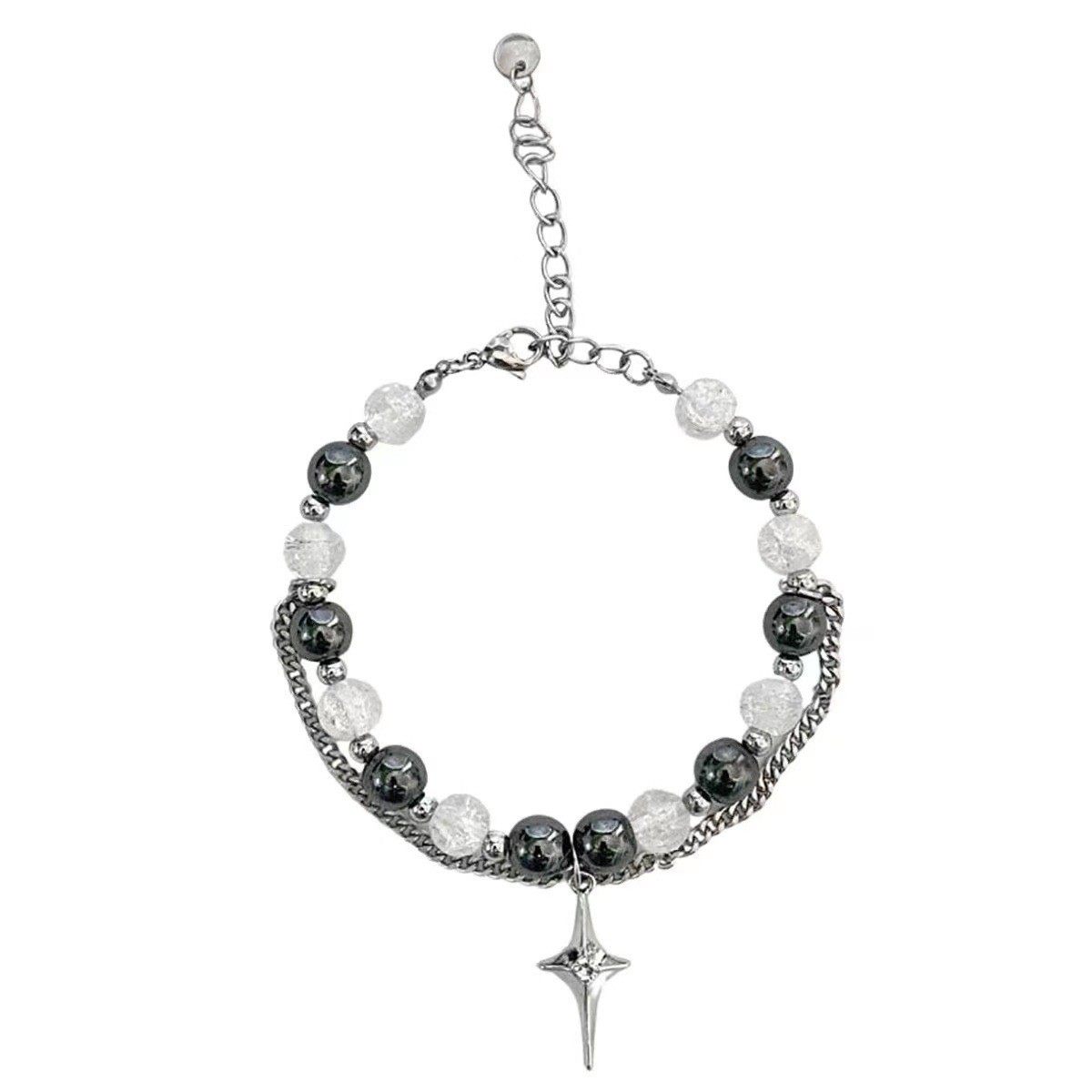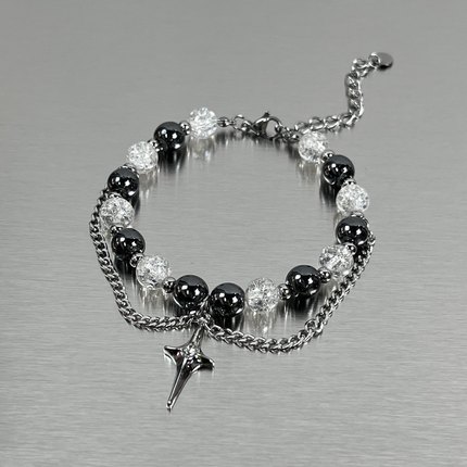 MINBIN 黑白冰裂珠星芒钛钢手链男女ins嘻哈小众高级感情侣手饰潮