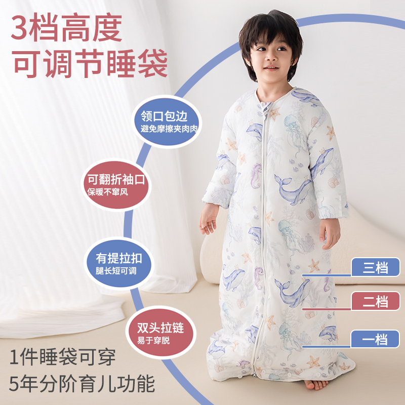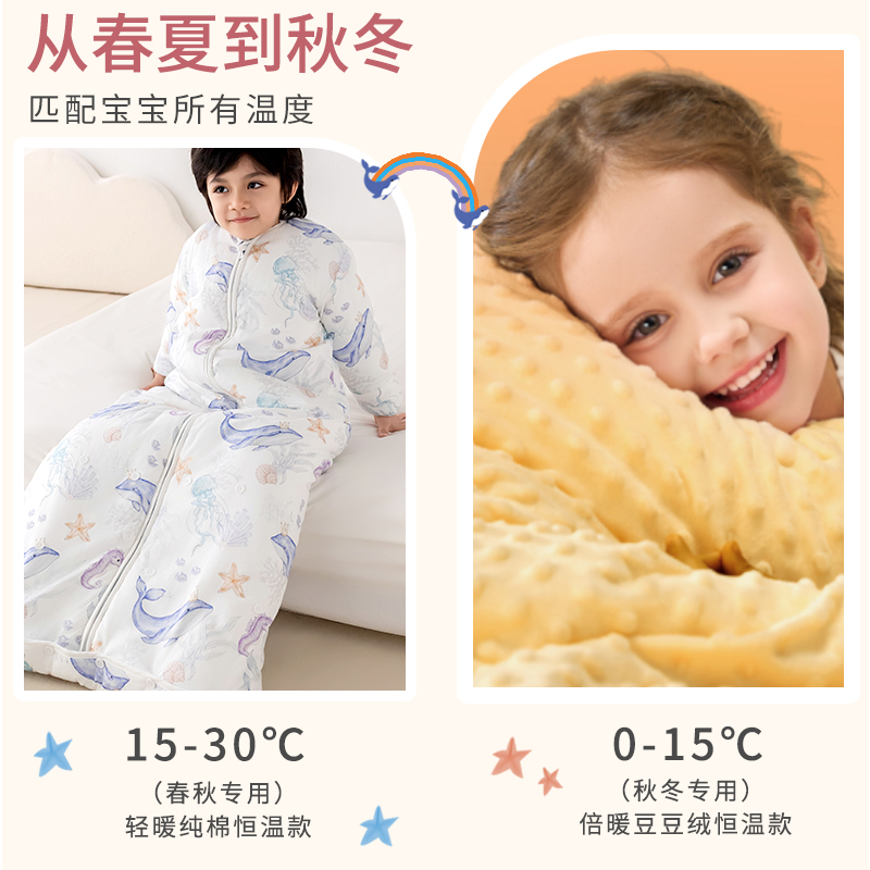 儿童睡袋四季通用秋冬加厚宝宝成长防踢被中大童小孩睡觉防蹬被子