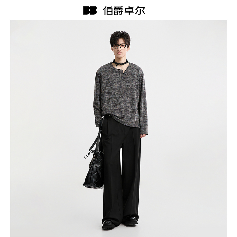 {定织提花半拉链设计感} 伯爵卓尔25秋季休闲长袖T恤男韩系体恤衫
