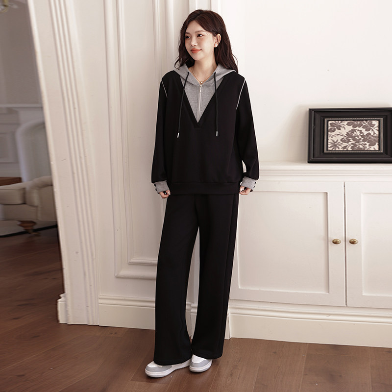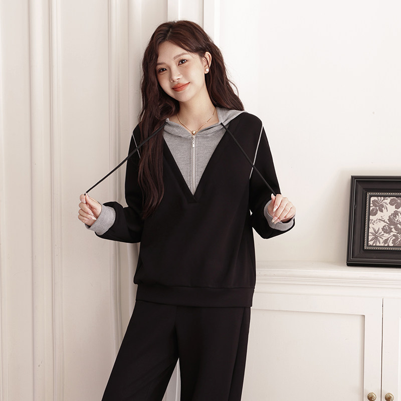 绮娑大码女装两件套新款秋冬套装胖mm宽松连帽卫衣上衣200斤显瘦